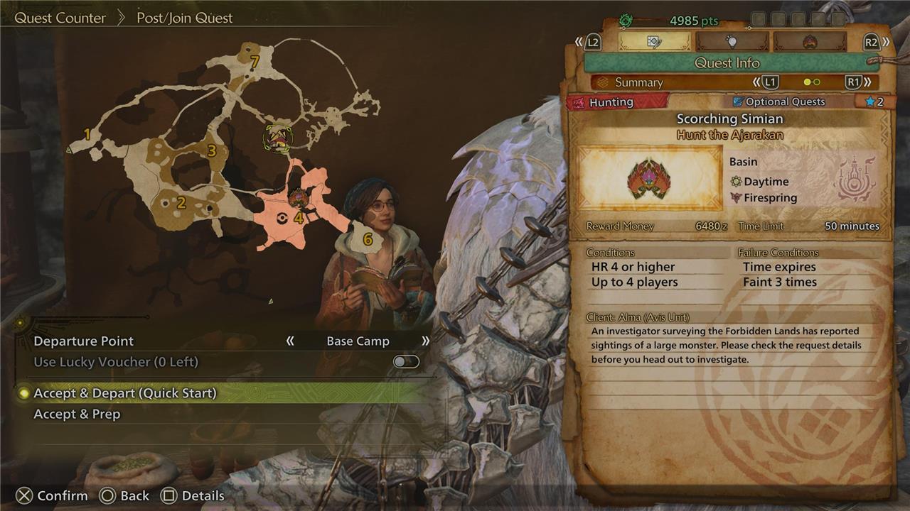 Since the encounter occurs during a main mission, you’ll be thrust into the fray after the introductory cutscene. As per usual, whenever you’re asked if you’re ready to depart, make sure that you’re carrying regular and mega potions with you. If you’re short on the latter, take a lap around the biome and loot any honey you come across.