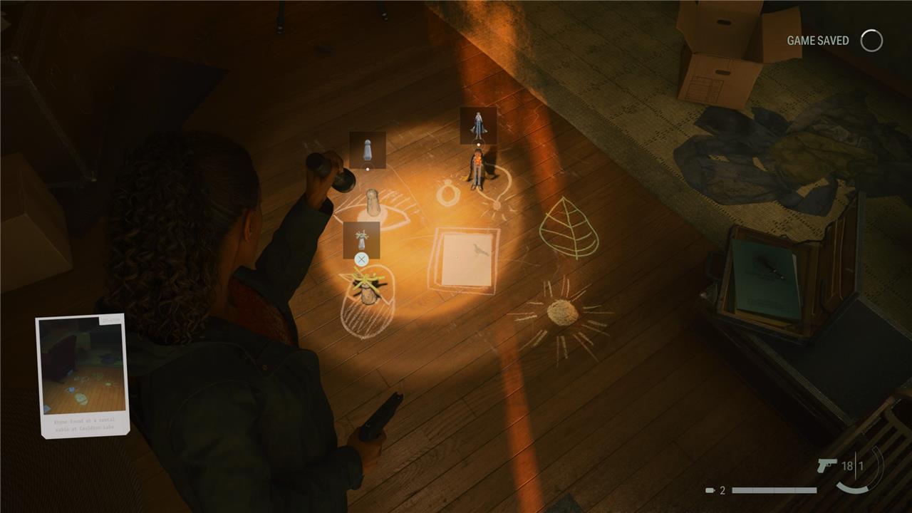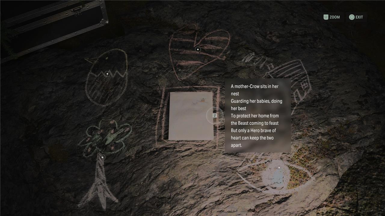 Cauldron Lake in Alan Wake 2 is the introductory area where players can find five of the game’s 17 Nursery Rhymes. These puzzles involve chalk drawings on the ground and handmade dolls that must be placed correctly according to the clues in the rhymes. After the flood waters recede in Saga’s Return chapters, players can explore this northern part of the woods to locate these rhymes. Successfully solving each Nursery Rhyme here rewards players with useful charms, such as the Hammer Charm to stagger enemies or the Coffee Mug Charm that can save you from death. The puzzles often require collecting and placing dolls like the Crow, Hero, and Wolf on specific parts of the drawings to unlock the rewards and progress further in the game’s side quests.