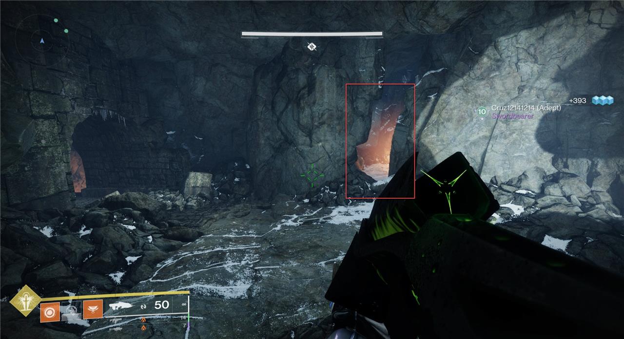 The Taken roil at cave’s bottom sends you to scurry over boulders into a ruined alcove.