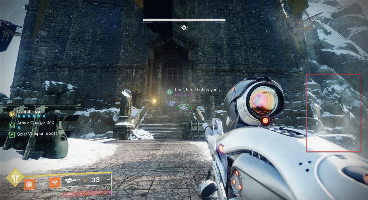 After you defeat the enemies, head into the cubby pictured above. There is where you’ll find the corruption level 2 door and the sixth set of Ahamkara Bones.