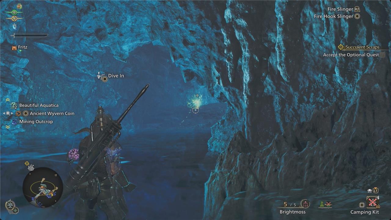 The hidden caves and underwater spots most likely to contain Ancient Wyvern Coins in Monster Hunter Wilds include: