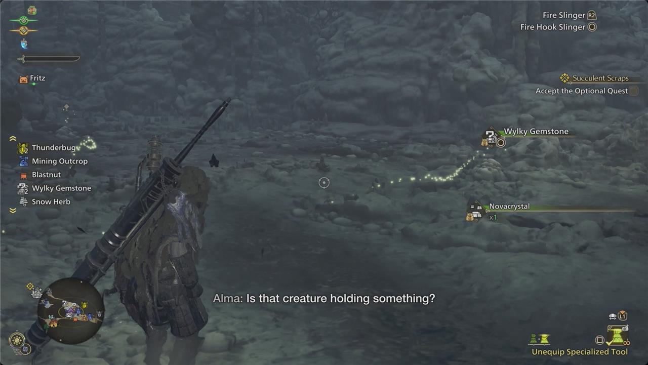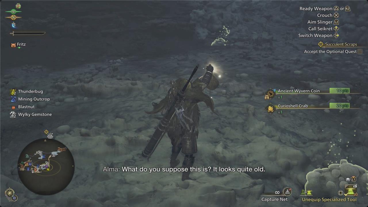 These are hard-to-spot endemic life that can show up in any region. Chances are, the only clue you’ve gotten about them so far is Alma saying, “Is that creature holding something?” If you can spot it and snag it with your capture net before it runs away (wearing the ghillie mantle helps you stay hidden), you’ll get whatever it was carrying – which in our testing has been an ancient wyvern coin.