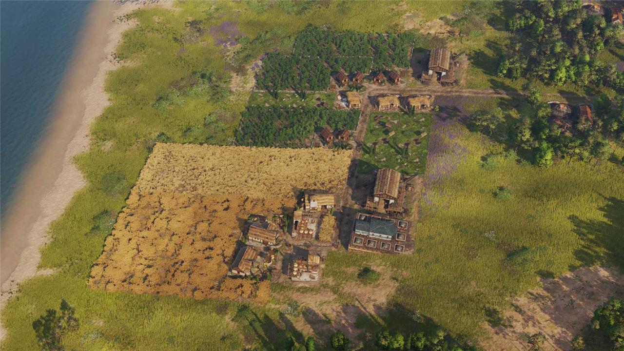 As you (slowly!) set up the agricultural layout, increase your population alongside it. Divide your time evenly (add a residential quarter, add a new production line, then add a new residential quarter again) to ensure you don’t end up without enough workforce or goods.