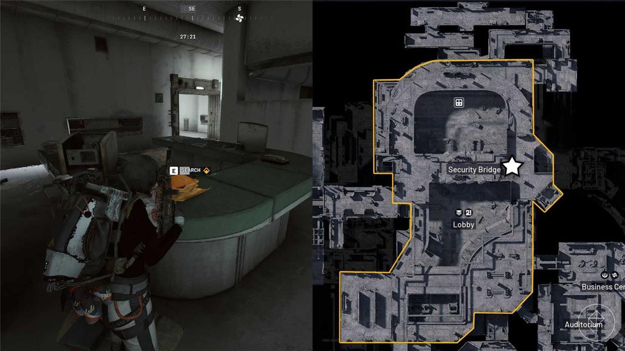 Next up, you want to head to the Security Bridge location on the upper floors of Stella Montis, directly north of the Lobby. To the right-hand side of the “Security Bridge” text on the map, you’ll find a breachable door marked “Security – Restricted Access.”