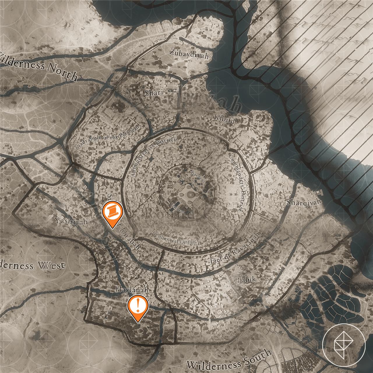 The Delight by the Dome Enigma is one of the more straightforward ones to find. Head to the Mosque Viewpoint to the southwest of the Round City.