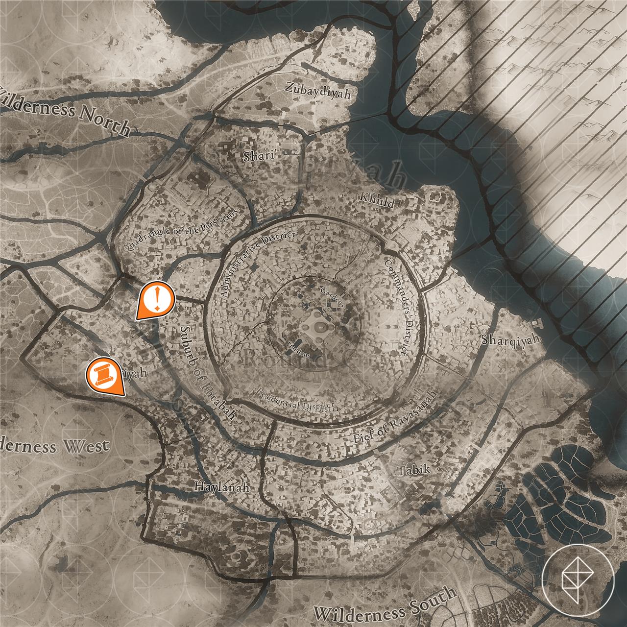 You’ll find the clue a little southeast of the House of Wisdom in the Abbasiyah district to the west of the Round City district.