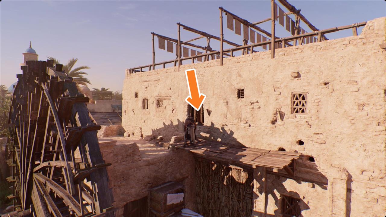 The “A Challenge” Enigma in Assassin’s Creed Mirage is found on the balcony of a house in the Yasiriyah district of Abbasiyah, just southeast of the House of Wisdom and south of the Scriptorium. After collecting the enigma scroll, players must decipher its poetic riddle, which directs them east from the Observatory to an area with three large water wheels-this is a paper mill on the island where the waters split. The treasure is hidden inside the building with the water wheels: to access it, break the barred window with a throwing knife, enter, and drop to the ground floor to find the reward-a Black Rostam Outfit dye-waiting on a brick square inside.