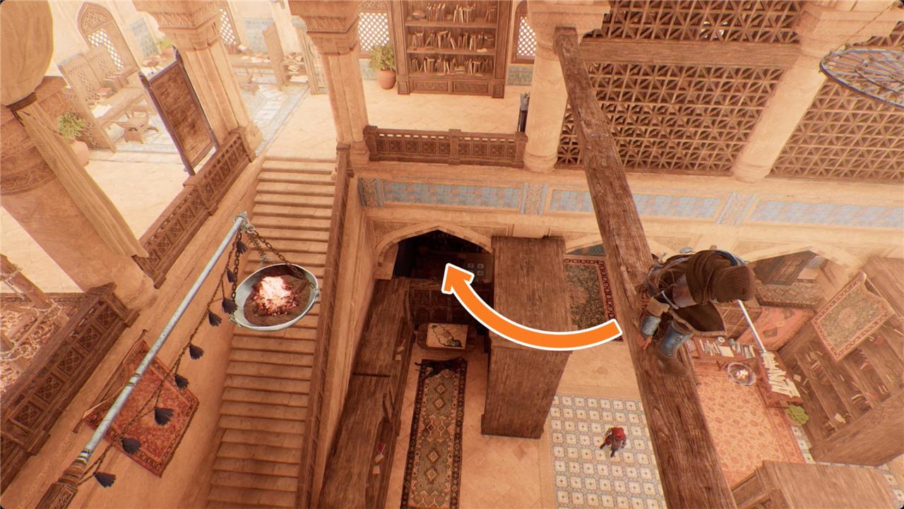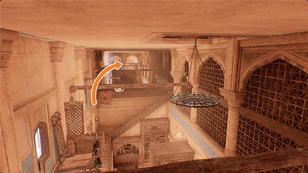 Guards have locked down the upper floors of the House of Wisdom, so you’ll have to be either stealthy or stabby as you search for the Caretaker of Books in his office in the southwest wing.