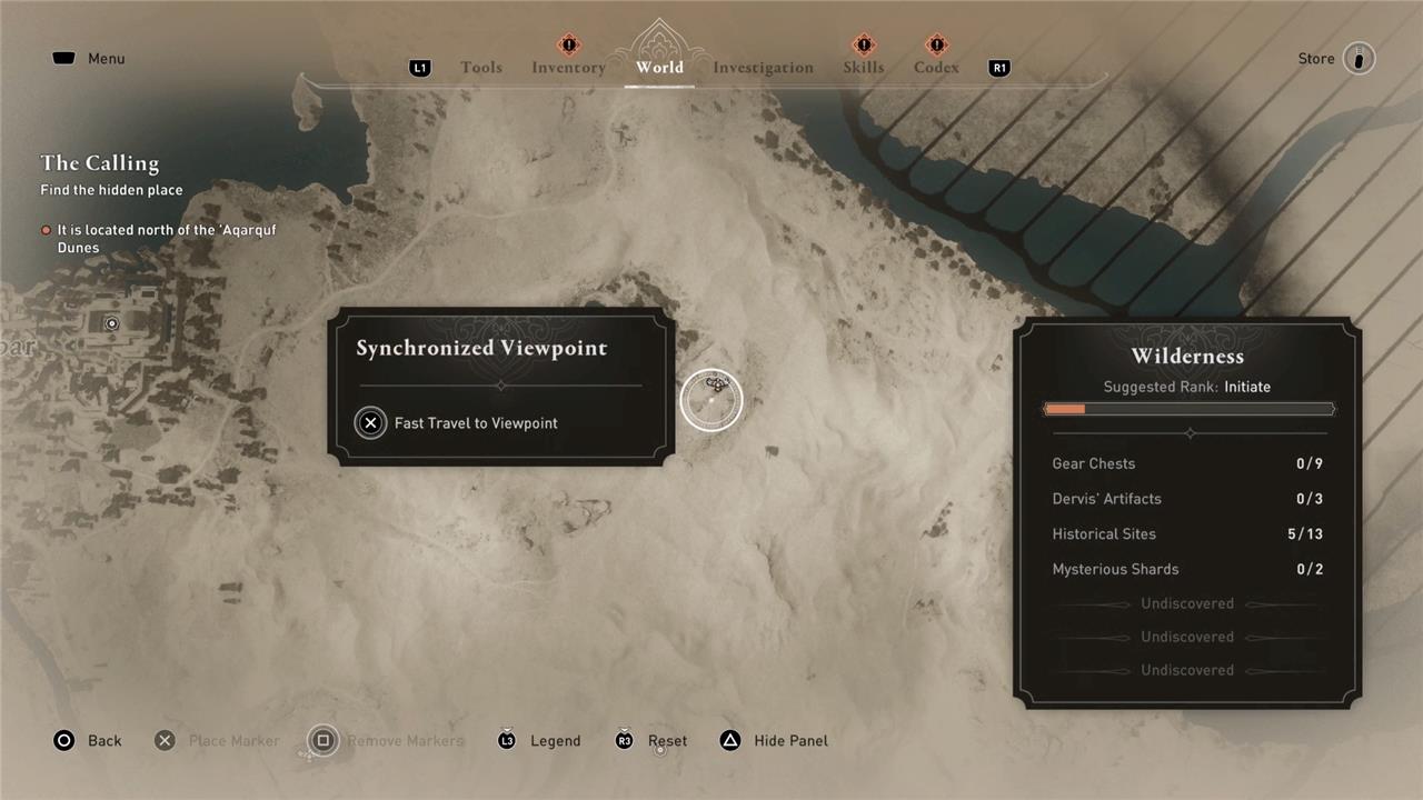 The hidden place north of the Aqarquf Dunes in Assassin’s Creed Mirage is located beneath the surface of a large oasis east of the city of Anbar. To find it, head north from the Aqarquf Dunes until you reach the Northern Oasis Viewpoint, then dive into the water at the oasis and swim down to discover a hidden underwater entrance leading into a cave. Inside this cave, you will find a secret chamber containing three legendary items that can be unlocked by collecting and placing Mysterious Shards into the corresponding pillars.