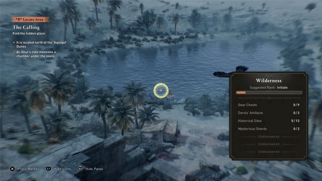 To find the hidden place in “The Calling” quest in Assassin’s Creed Mirage, head to the Northern Oasis located east of the city of Anbar and north of the Aqarquf Dunes in the North Wilderness region. At the oasis, dive into the water at its southern end and follow an underwater tunnel until you reach a dead end, then surface into an underground corridor. Continue through this passage, climbing past obstacles and following the path until you arrive at the hidden chamber. Inside, you will find three locked alcoves that can be unlocked by inserting 10 Mysterious Shards collected from special Order members scattered across the game world. Unlocking these alcoves rewards you with unique weapons and armor, completing the quest and revealing the chamber’s secrets.