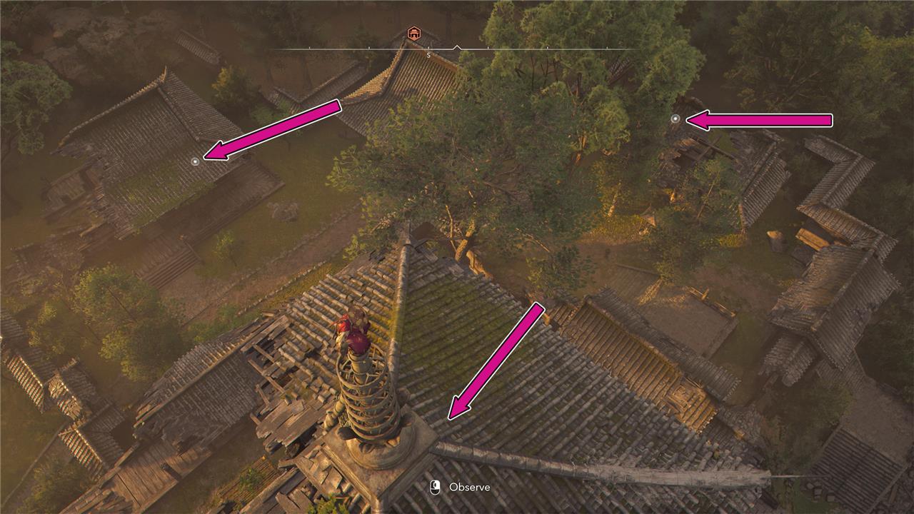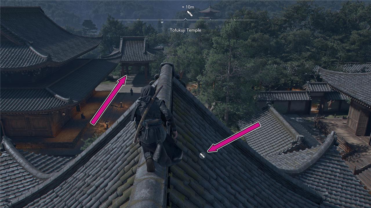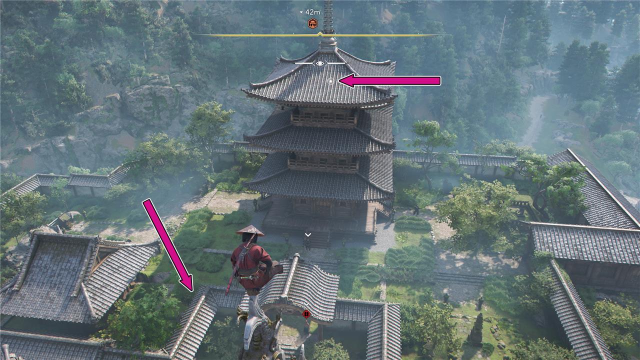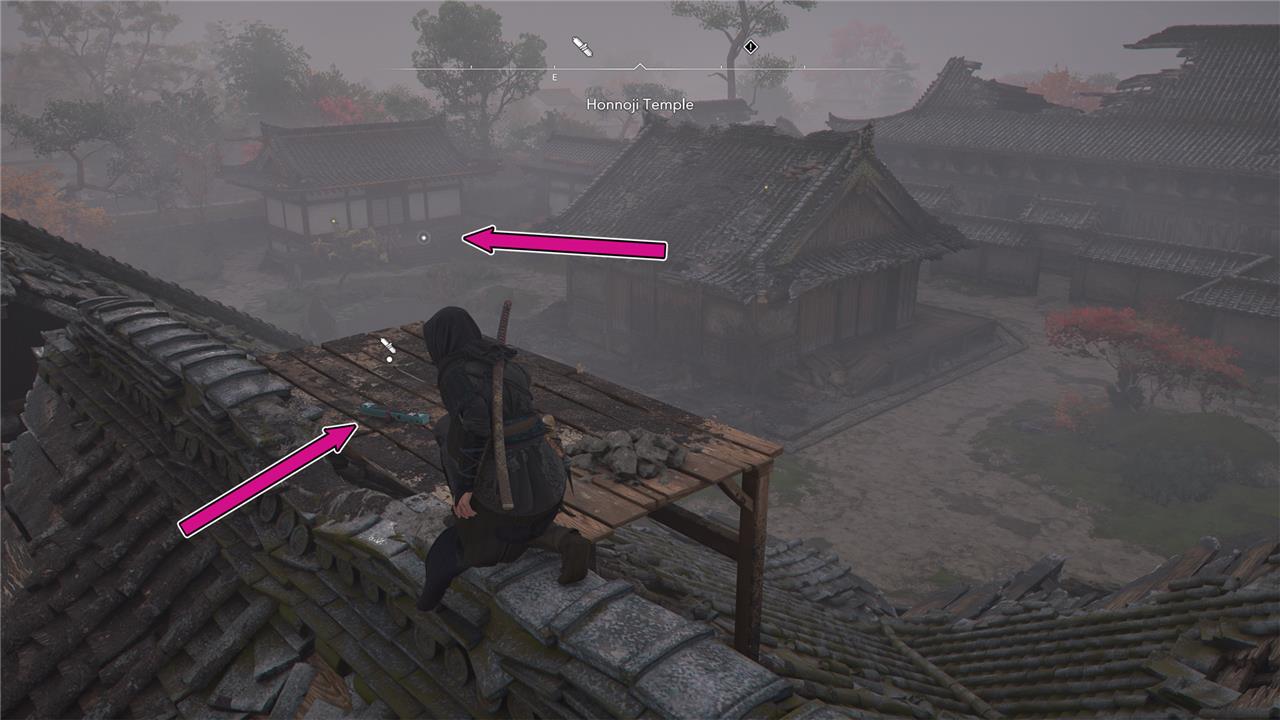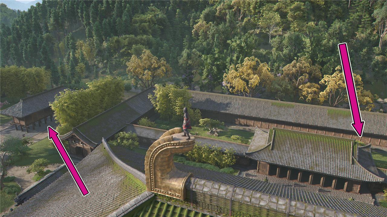 • If you enter the temple grounds from the southeast (there’s a hole in the wall), climb the first building you see and grab the Lost Page from the balcony.