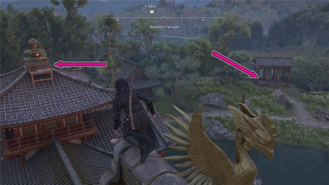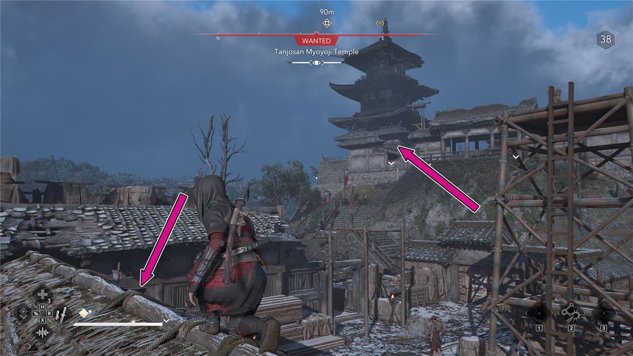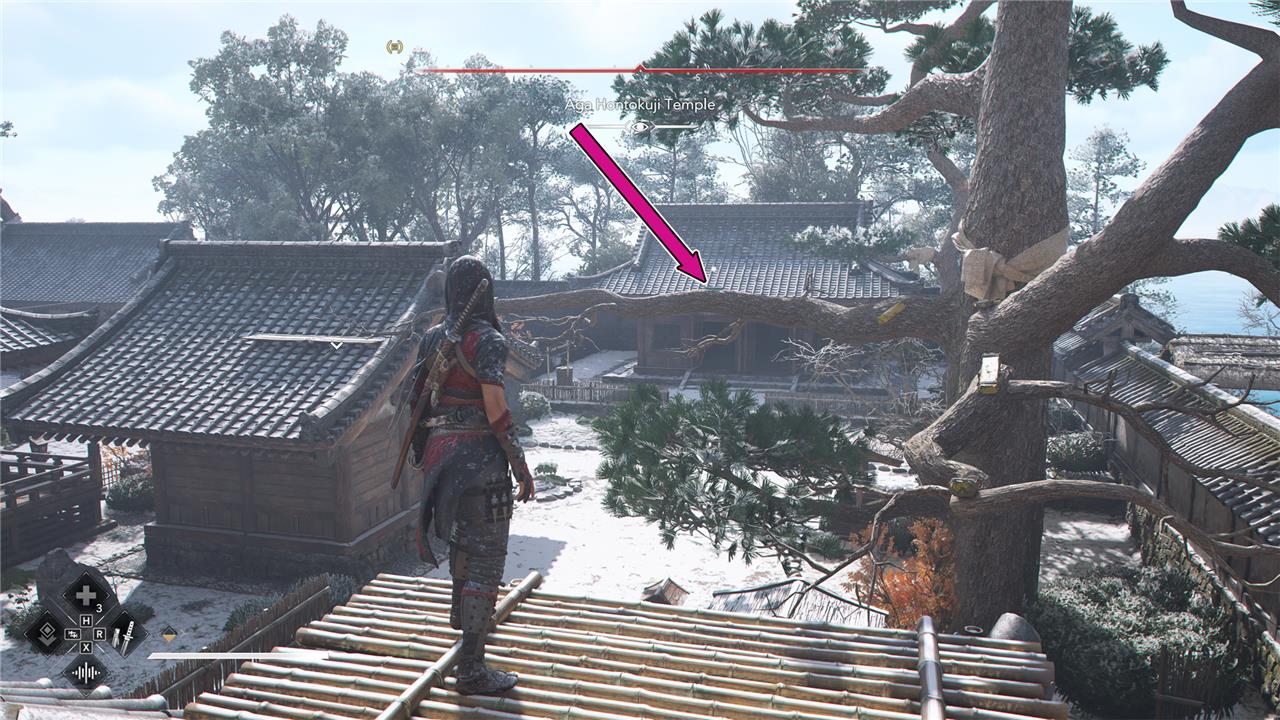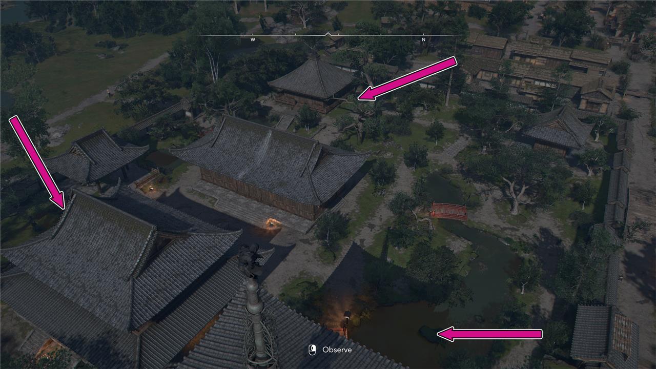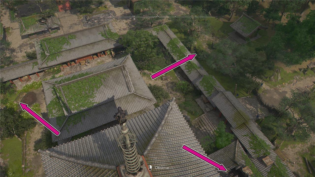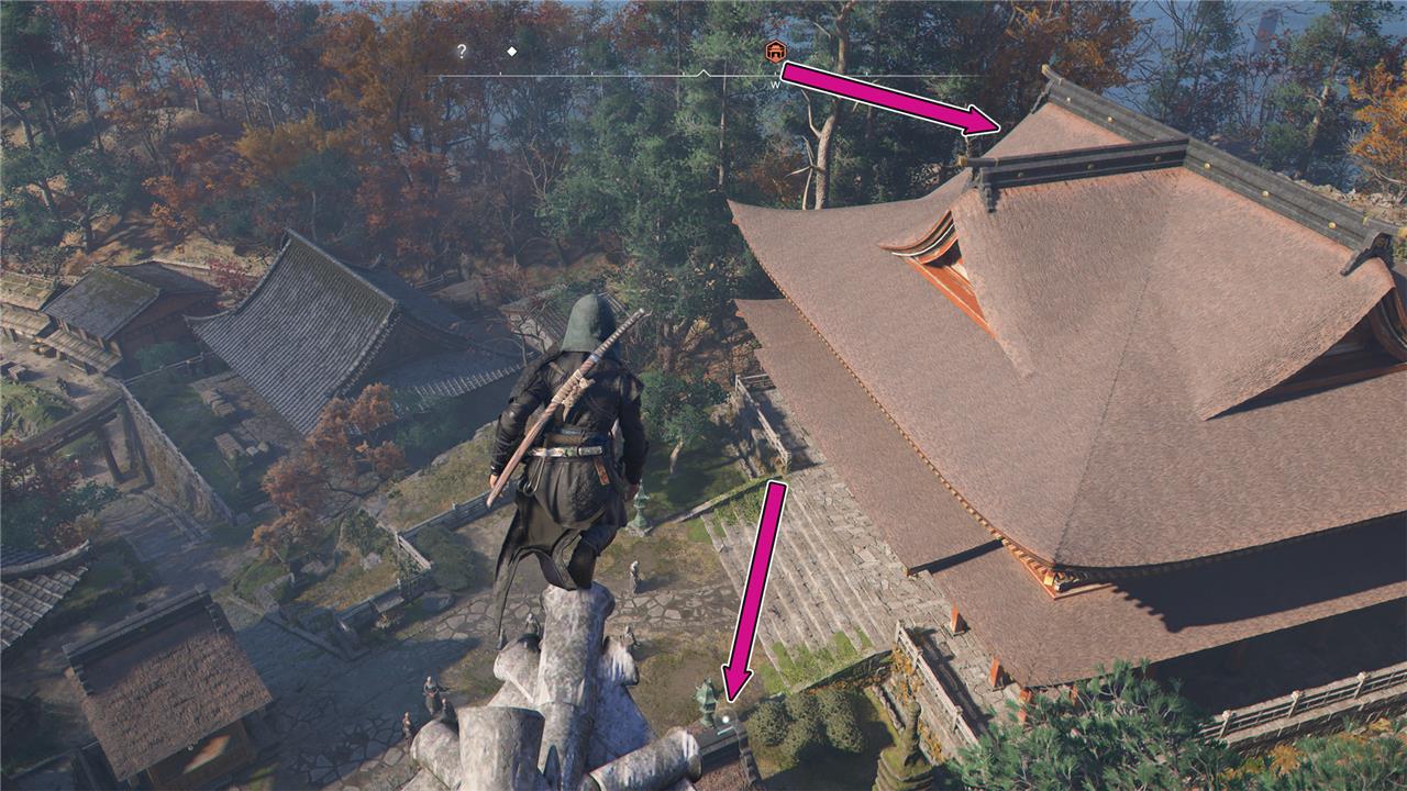 • If you enter the temple grounds from the southeast (there’s a hole in the wall), climb the first building you see and grab the Lost Page from the balcony.