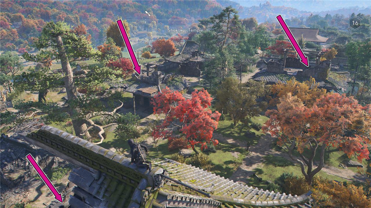 In the Yamashiro province of Assassin’s Creed Shadows, players can find several Temples that house Lost Pages, each offering valuable Knowledge Points upon collection. Notable temples in Yamashiro include Ginkakuji Temple, where Lost Pages are hidden on rooftops and small islands within the temple grounds, requiring careful exploration and use of Naoe’s Observe ability to locate. These Lost Pages are often placed in elevated or secluded spots, such as tree branches or rocky islets, challenging players to thoroughly search the area. Collecting all Lost Pages in these temples not only rewards experience points but also contributes to unlocking new abilities through Knowledge Points, making the exploration of Yamashiro’s temples a rewarding endeavor for players seeking to enhance their skills.