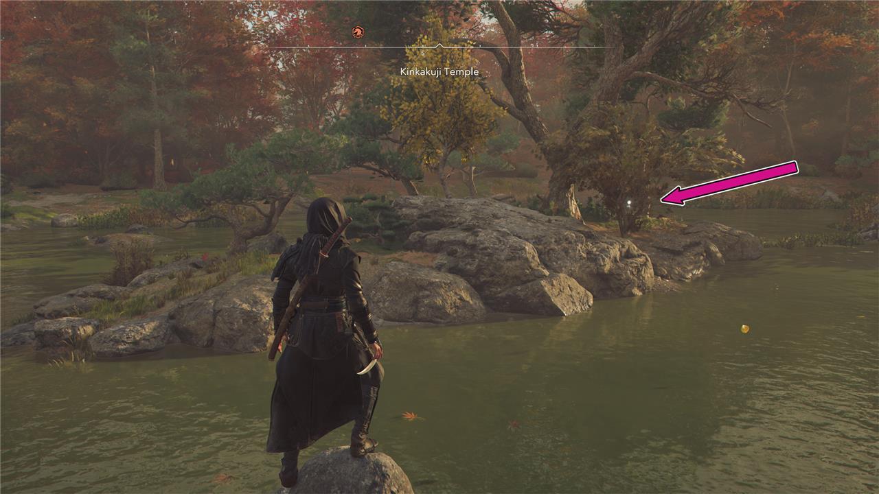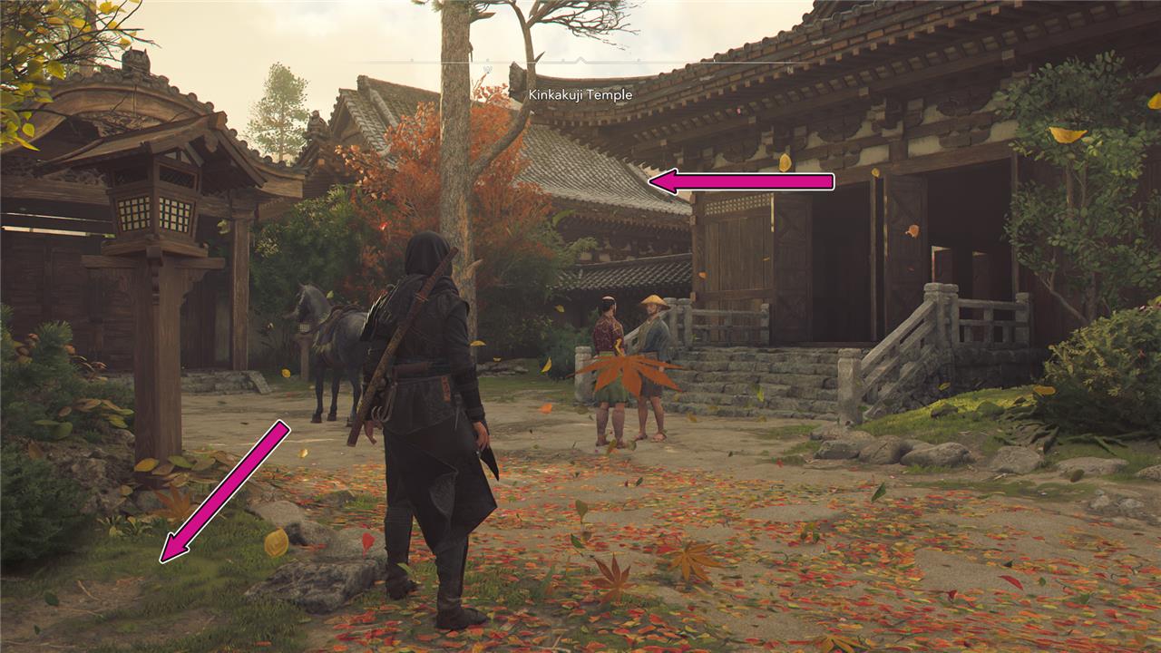 If you follow the path north of Kyoto, it’ll lead you to Kinkakuji Temple. There are four Lost Pages to collect here.