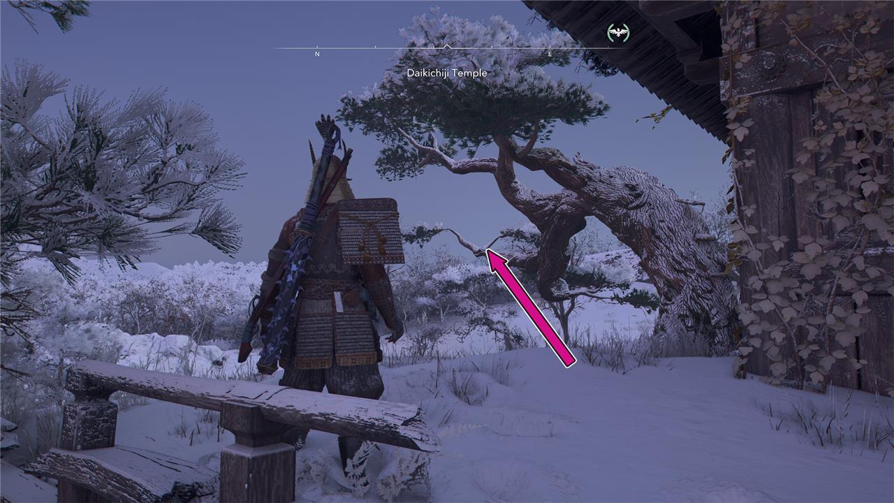 • If you look to the right directly after entering the temple, you’ll see a tree at the end of the path; the second Lost Page is on this tree.