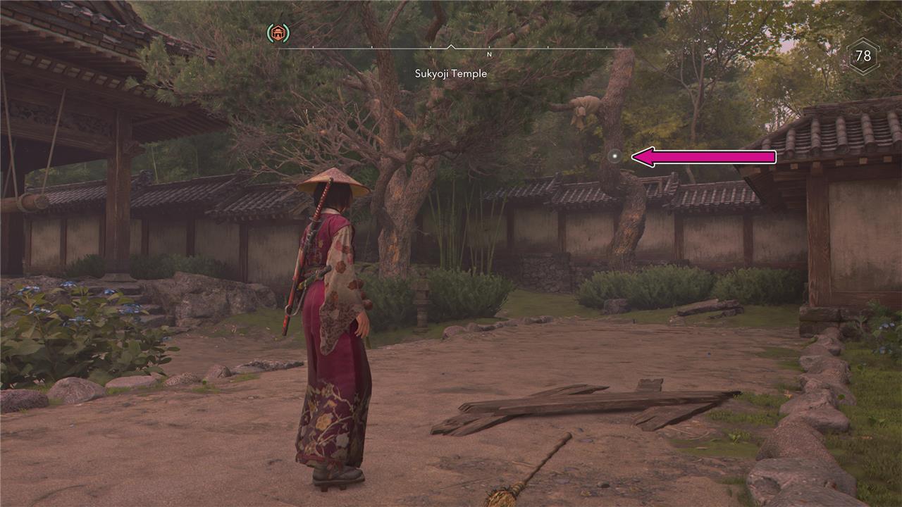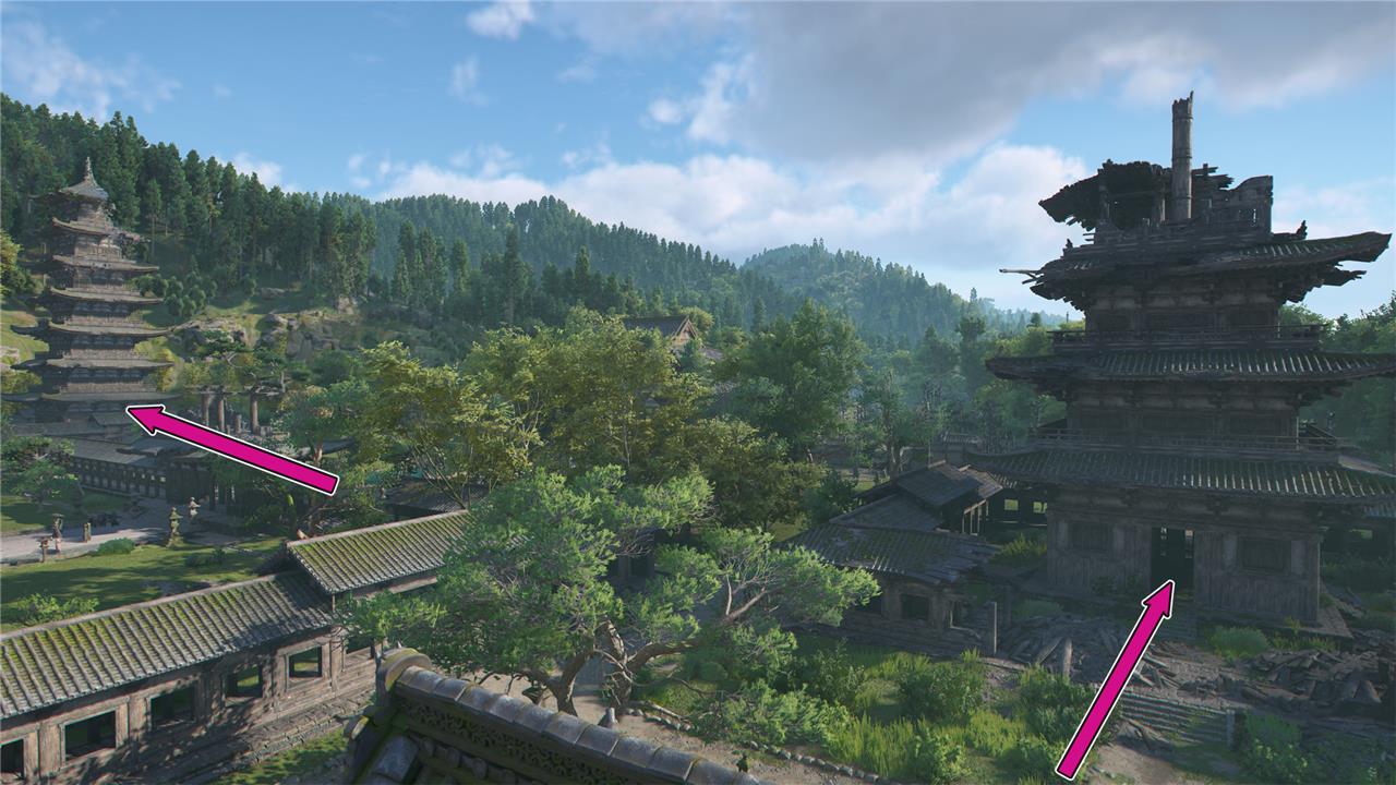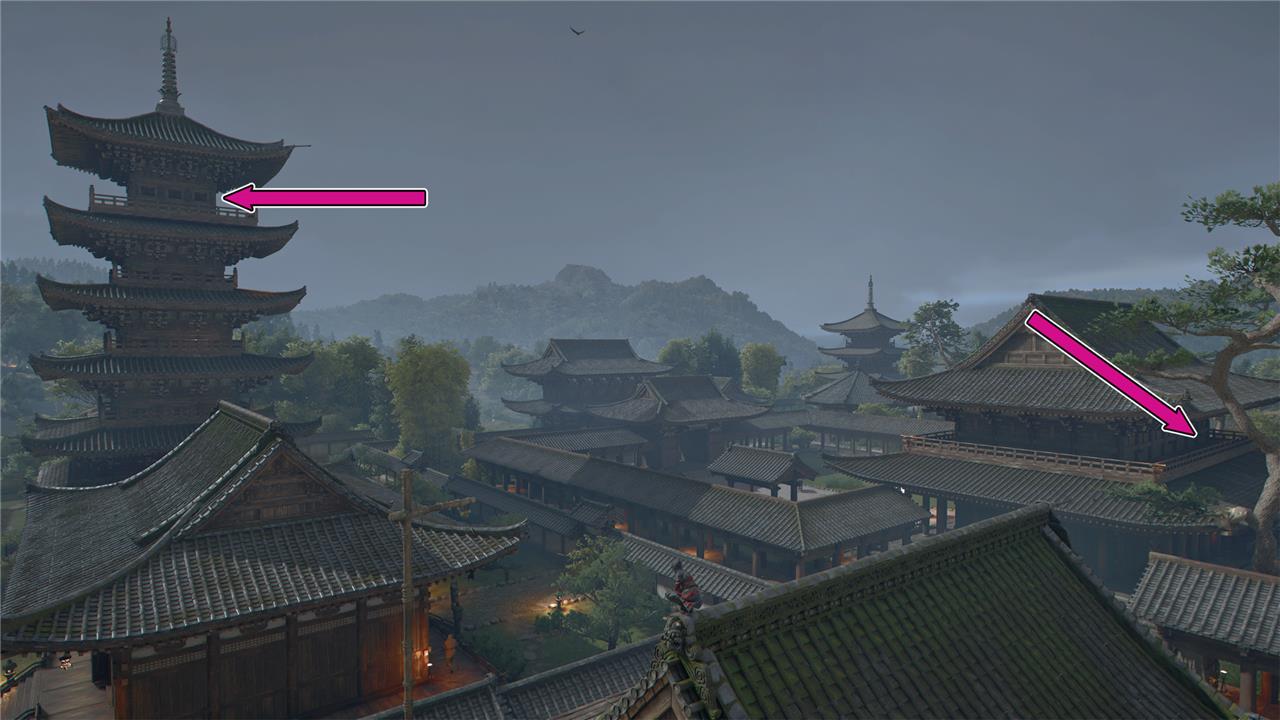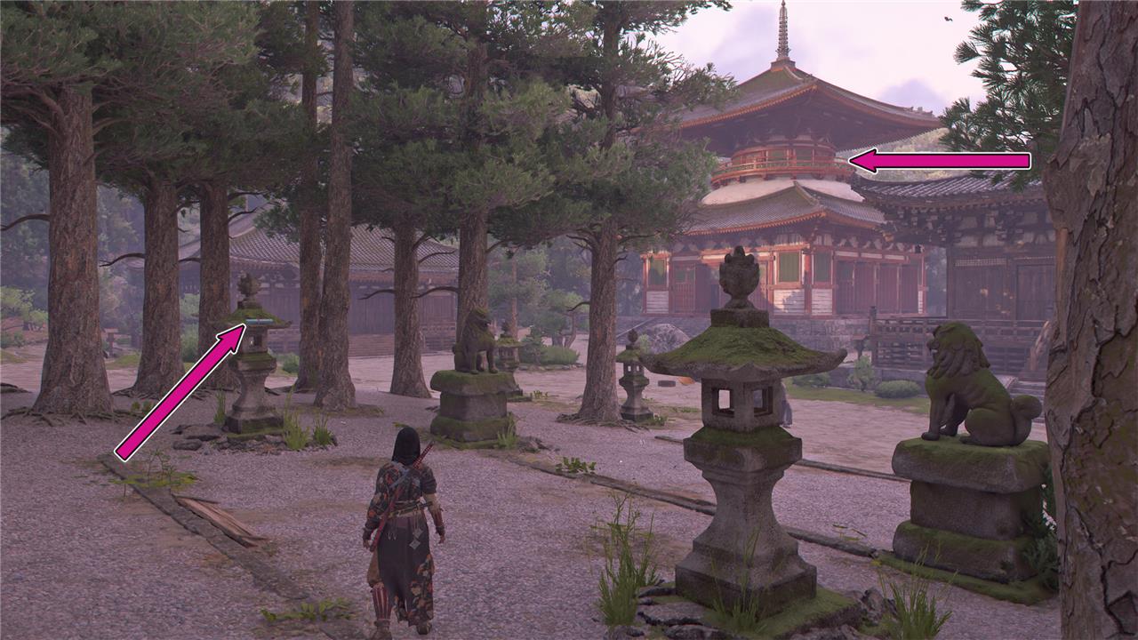 You’ll find the Annonji Temple in the southern part of Tamba, conveniently located below a viewpoint. There are three Lost Pages to collect.