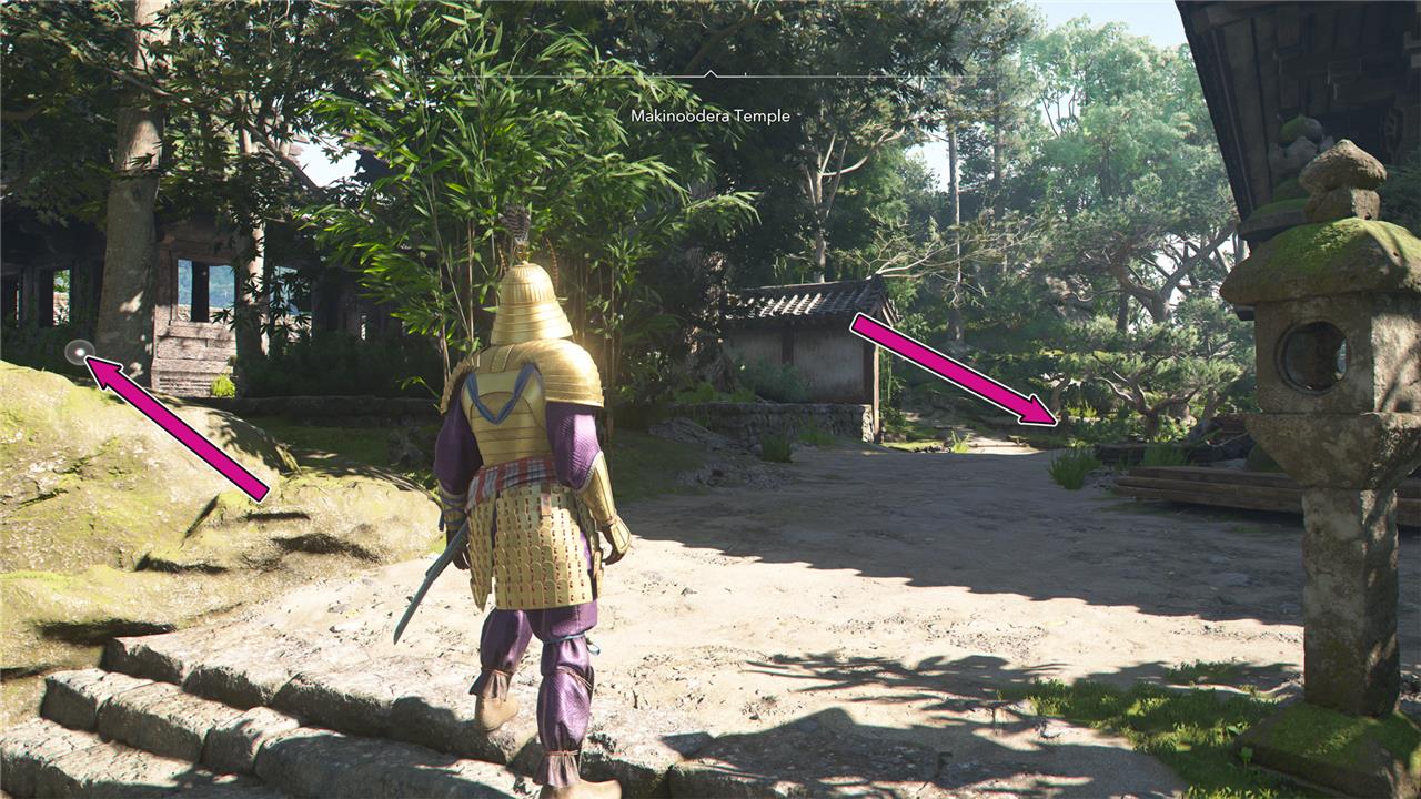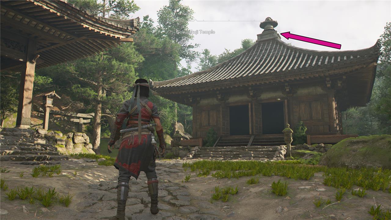 The Gokurakuji Temple is the first building you’ll see if you ride north from Yamashiro. You must find two Lost Pages here.