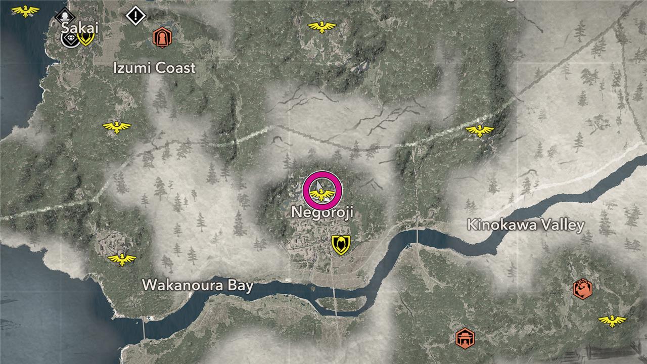 The Negoroji Temple is in the northwestern part of Kii, close to Izumi Settsu. The temple grounds are vast, with a total of five Lost Pages to collect.