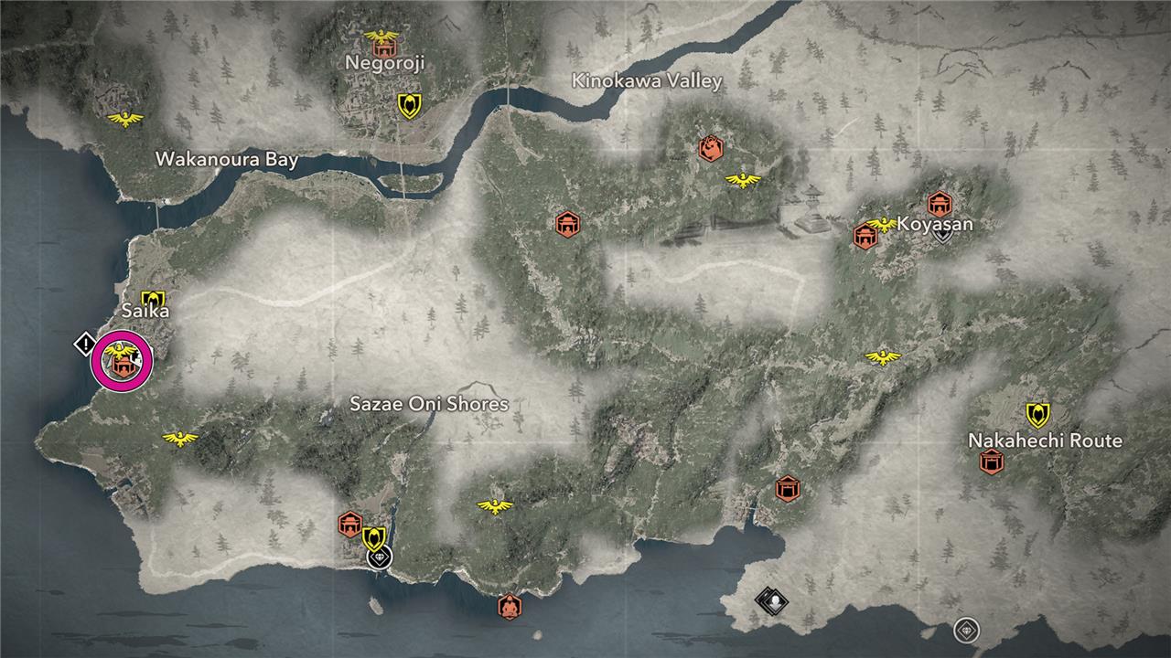 In Saika, on the west coast of Kii, you’ll find the Saika Temple. You must find two Lost Pages here. Beware that the viewpoint is on castle grounds – the temple is a bit further south.