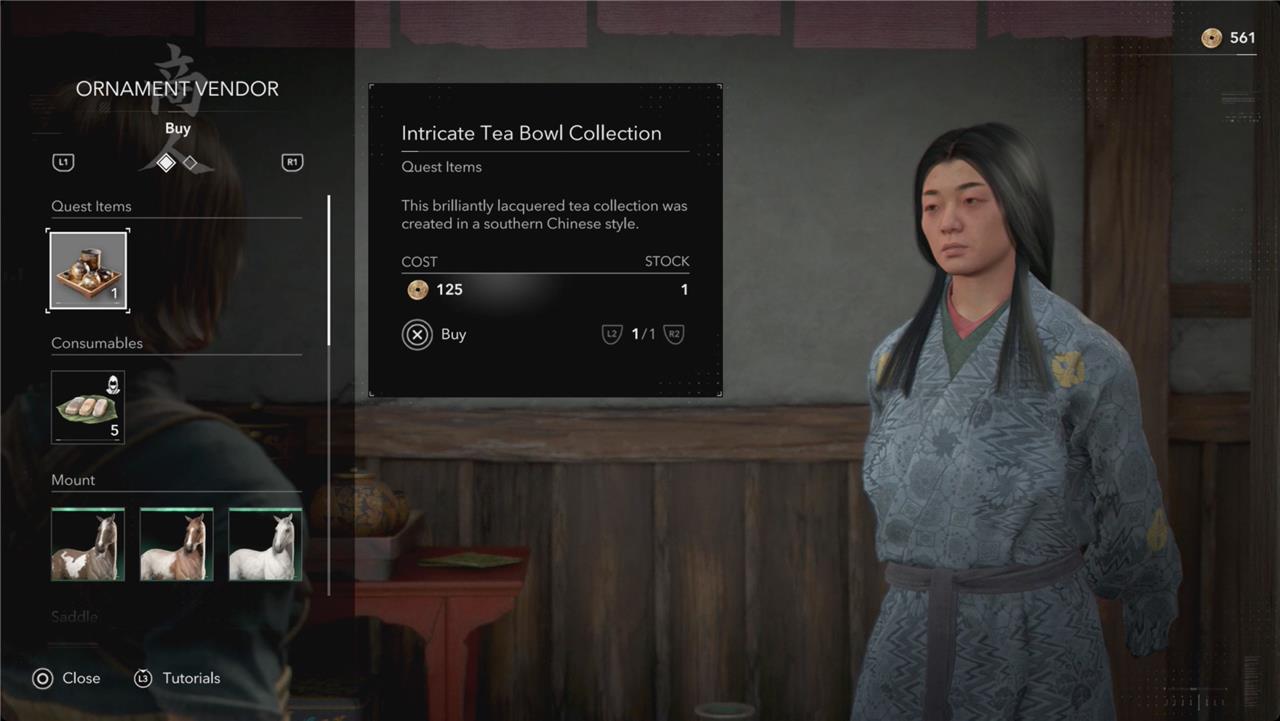 The tea bowls that Tea Master Sen no Rikyu is looking for are sold by ornament merchants and will be listed as quest items.