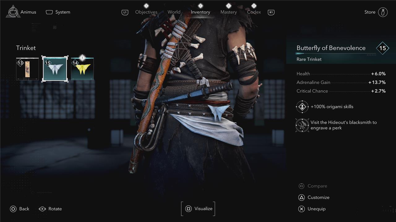 If you forgive her, though, and tell her to start a new life, you’ll also get the Butterfly of Benevolence trinket that. improves your origami skills? Yeah, we’re not sure what that means either.