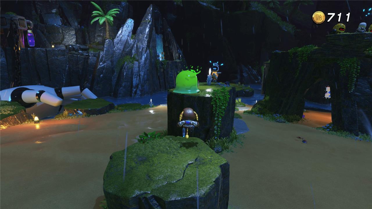 In the “Free Big Brother!” level of Astro Bot, players can find a total of seven bots scattered throughout the stage, alongside three puzzle pieces and a secret Lost Galaxy exit. The bots include three PlayStation mascot characters and are located in various spots such as near Big Brother’s head, inside caves, behind tiki huts, and atop a tower. The level features an open layout that allows thorough exploration without missing collectibles. Key bot locations include one on a rock taunted by a slime enemy, another rescued by swinging on a bird’s rope, and others hidden behind breakable floors or inside shells at the tower’s summit. Collecting all bots and puzzle pieces is essential for 100% completion of the level.