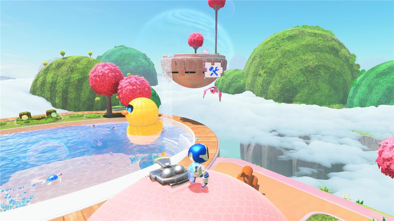 In the Sky Garden stage of Gorilla Nebula in Astro Bot, there are three puzzle pieces to collect. The first puzzle piece is found at the third checkpoint, before a large stone wall, after using the laser boost to glide over electric enemies and climbing a yellow ladder. The second puzzle piece is located on the back of a pink flamingo circling above a stack of logs, which you can reach after obtaining the Octo-Balloon ability. The third puzzle piece can be found at the top of the giant water tank tower, on the lead blue stingray in a swimming group. Collecting these pieces requires careful exploration and use of abilities like the laser boost and Octo-Balloon to reach hidden or elevated areas.