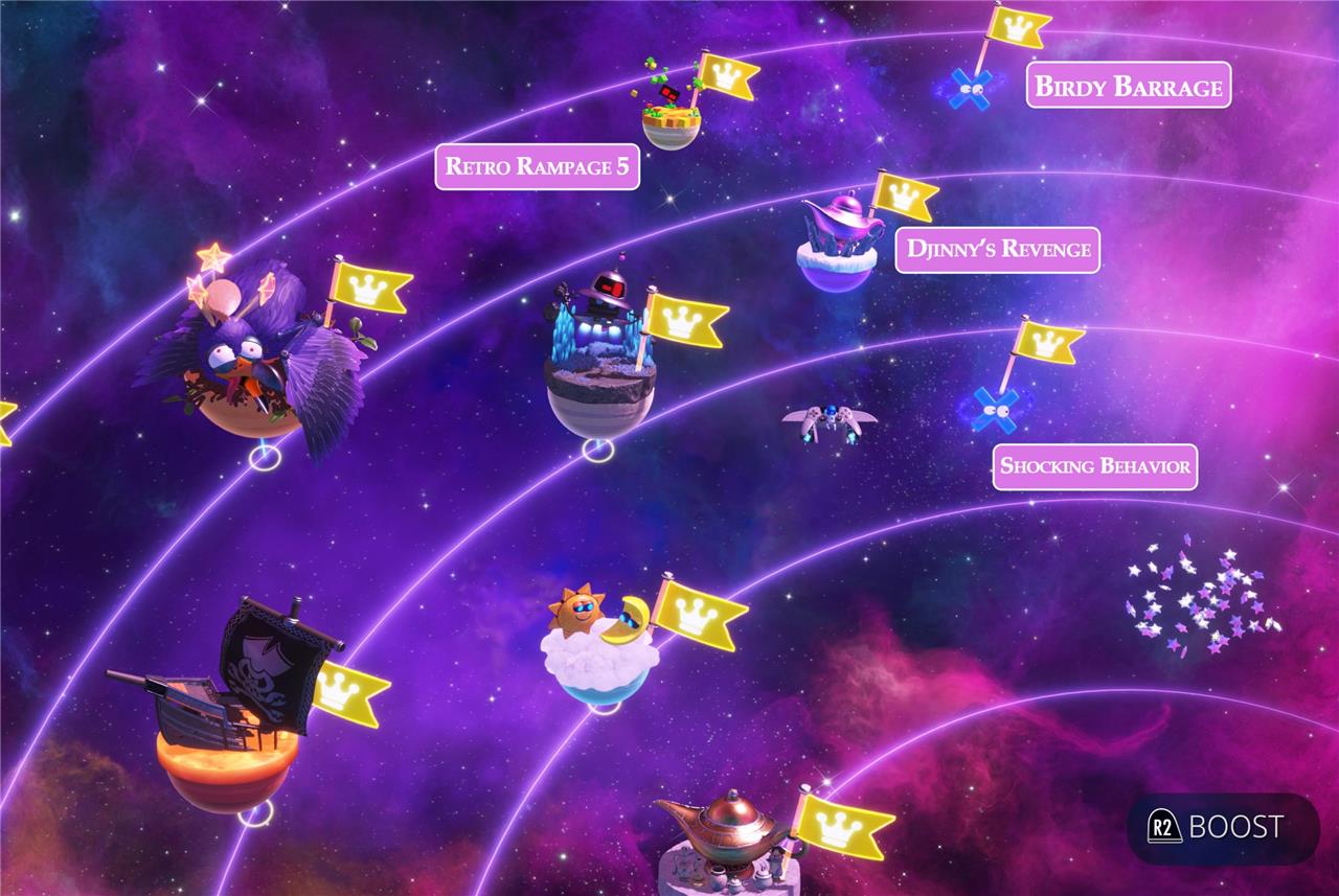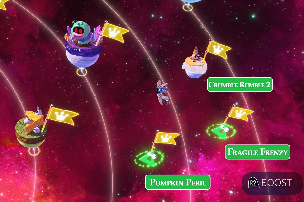 When you first unlock a nebula in Astro Bot, you’ll have access to one planet. As you complete more levels, more planets will appear, until eventually you’re able to face the boss. However, there are a ton of little planetoids hidden in the nebulas, all of which house a bot. There are even some puzzle pieces that have been abducted by aliens, which you’ll need to chase around the screen to collect.