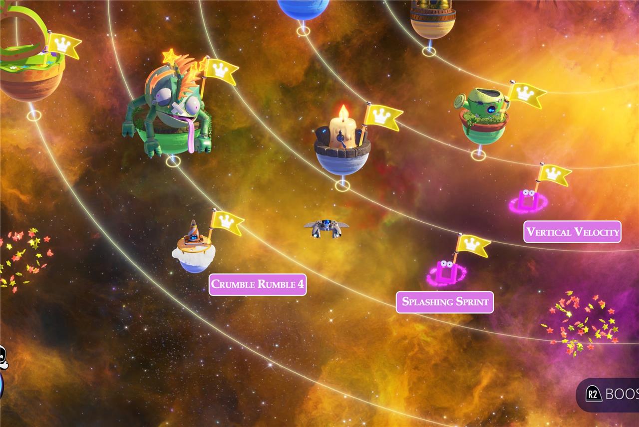 Additionally, the other two hidden levels in Gorilla Nebula, Rolling Star Sola and Crumble Rumble 1, unlock after defeating the area’s boss, Mighty Chewy. Since Gorilla Nebula lacks the more complex Void challenge levels found in other nebulas, it is generally considered the easiest zone for unlocking secret content.