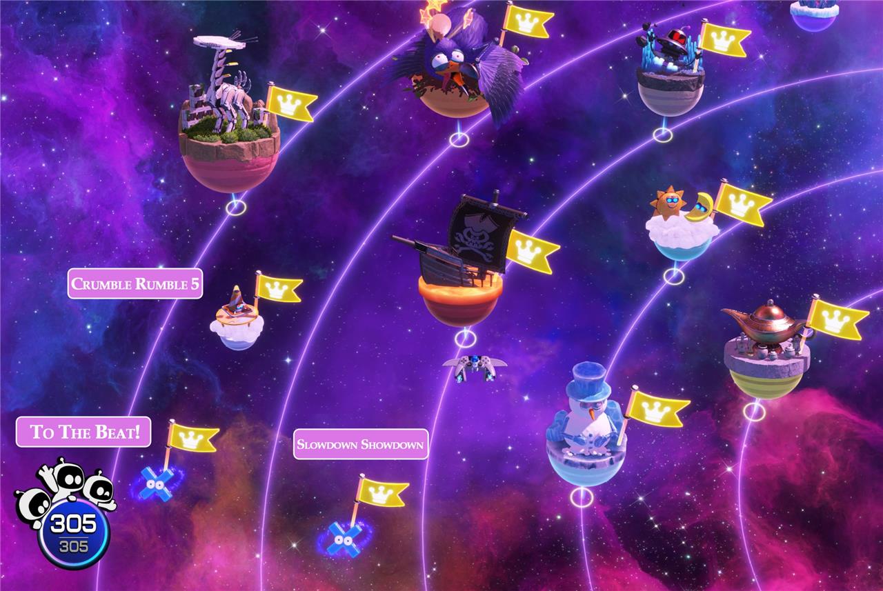 In four of the five nebulas, you’ll eventually find voids shaped like one of the four PlayStation buttons. By launching those levels and running through to the end, you’ll unlock four new challenges in that nebula, themed after an X, Circle, Square, or Triangle.