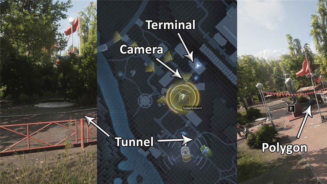 Go to the open-world train/monorail station you first use at the start of the VDNH: Grounds chapter, then move east/northeast from that station to the yellow Testing Ground 1 circle on your map.