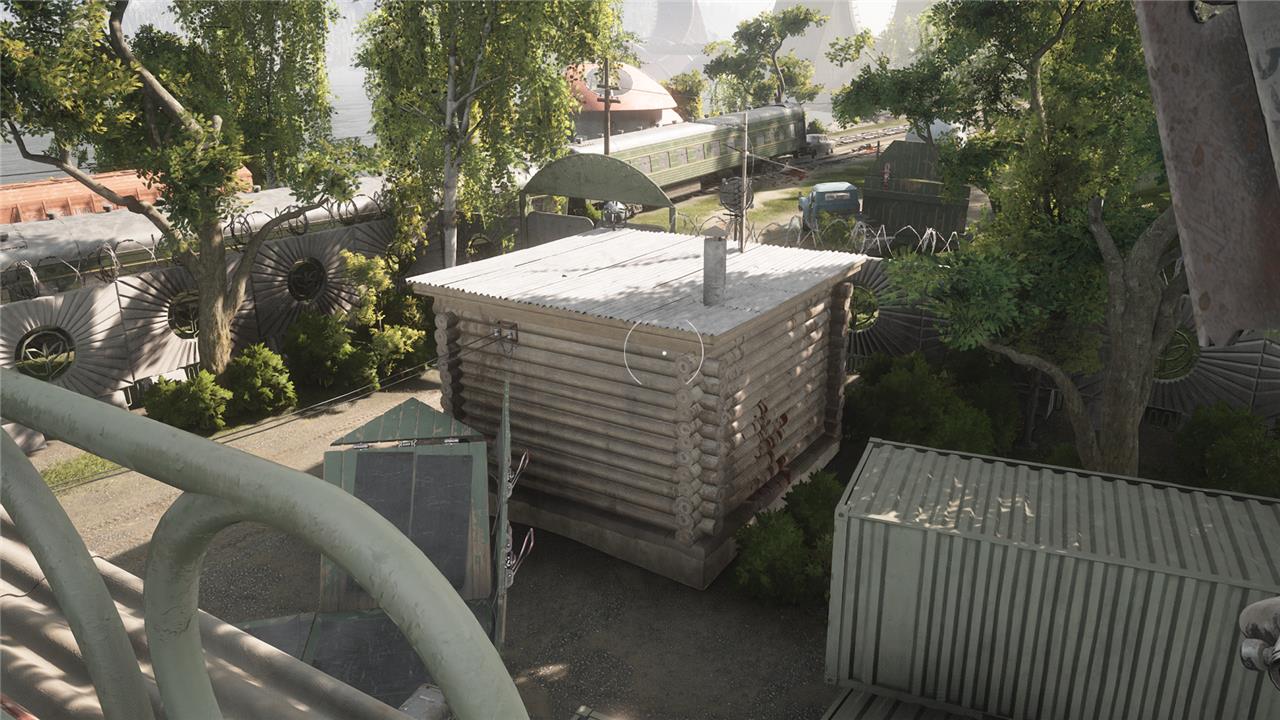 Head east from the Monorail Station in the VDNH Grounds chapter to reach Testing Ground 1’s silo door, which appears locked. Climb the nearby spiral staircase, activate the terminal to hack area cameras, select the one facing the door, and press R1 or RB to pry it open. Return to the silo, take the elevator down to enter.