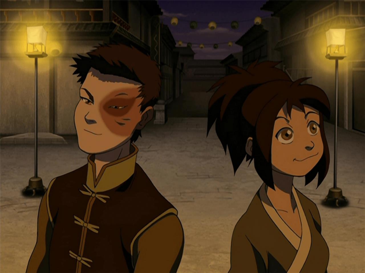 Petrana: THIS IS MY ZUKO SHIP OF CHOICE! I made everyone put this one-episode appearance on here because I just love it! I love that she doesn’t know who she is. I love that he turns the lights on for her, and does his best on their date, even if he’s totally out of his depth. Yes, sure you could read it as him doing it to make Iroh happy, but I like to think part of him did find Jin cute but didn’t know how to deal with that because Zuko is just totally unfit for dealing with the real world. I love that they almost kissed but he RAN AWAY BECAUSE HE IS A SAD PATHETIC LOSER WHO DOESN’T LET HIMSELF BE HAPPY! ARGH!!!!
