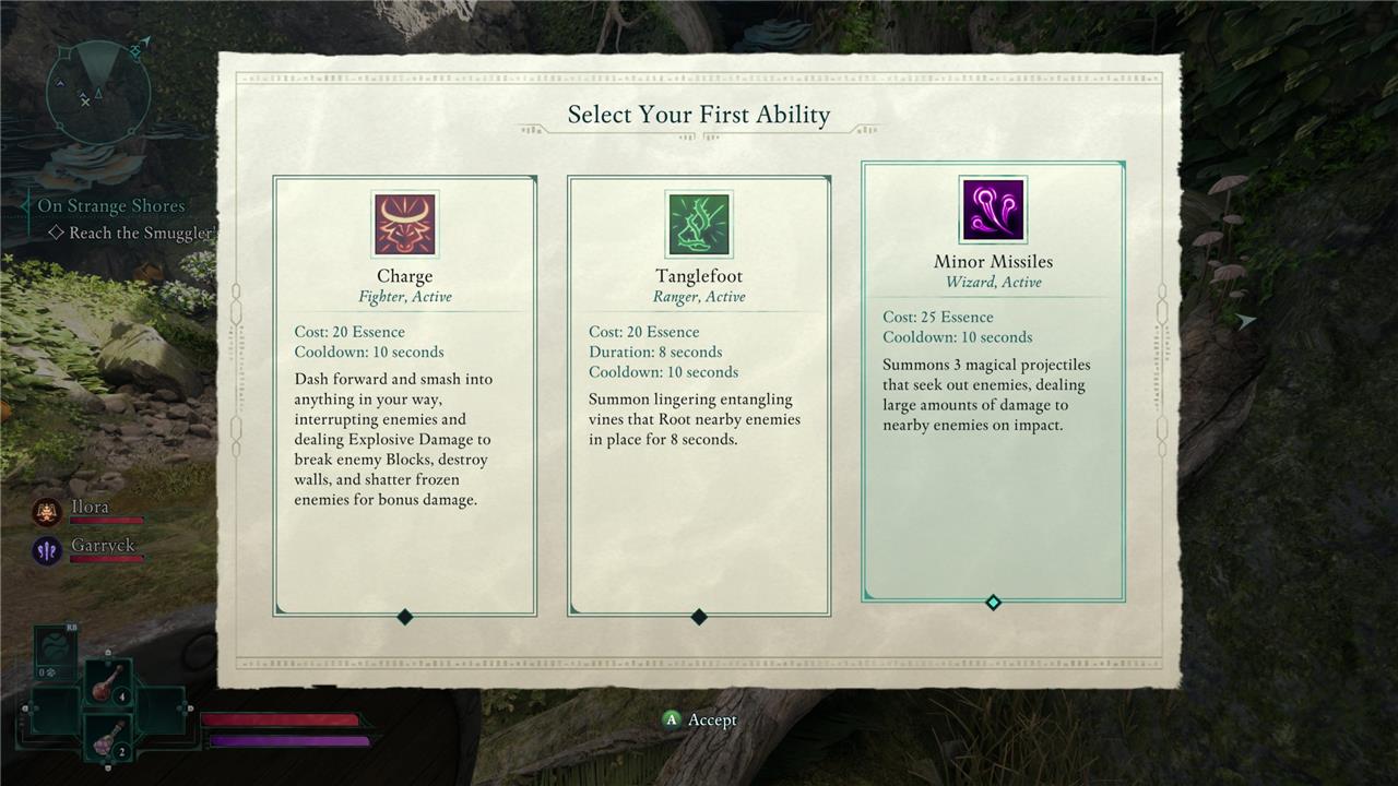 Charge is fine if you’re planning on focusing on a melee build, but otherwise ineffective. Minor Missiles, in our experience, is indeed incredibly minor: the 1o-second cooldown is too long to make the most of its damage output. Avowed fights tend to be challenging because you’re overwhelmed with a high number of enemies, or because you’re facing a singular large enemy who can rapidly close the distance between you. Tangleroot solves for both.