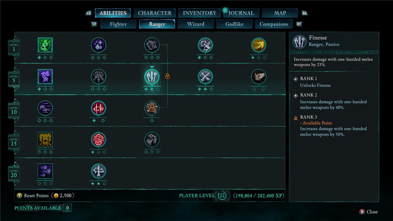Beyond that, there are minimal requisites – for example, to unlock spells in the wizard tree, you need to find a grimoire with that spell first – but for the most part, once you hit the level threshold, you’re free to invest ability points into the skills you want to prioritize.