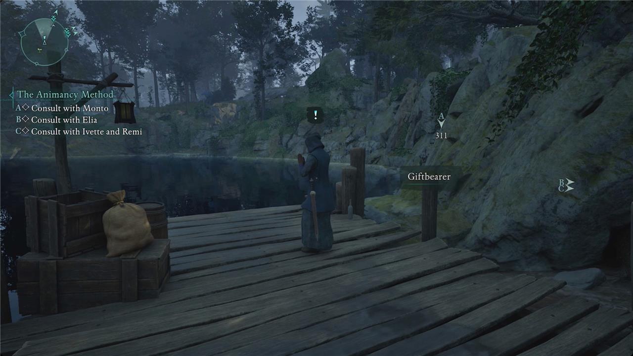 When you reach Lake Lacuna, you’ll meet the mysterious Giftbringer standing on the small dock. (Talking to him will give you the quest if you skipped Josep.) He’ll tell you that a shard of sky from the moon has fallen into Lake Lacuna and ask you to retrieve it.