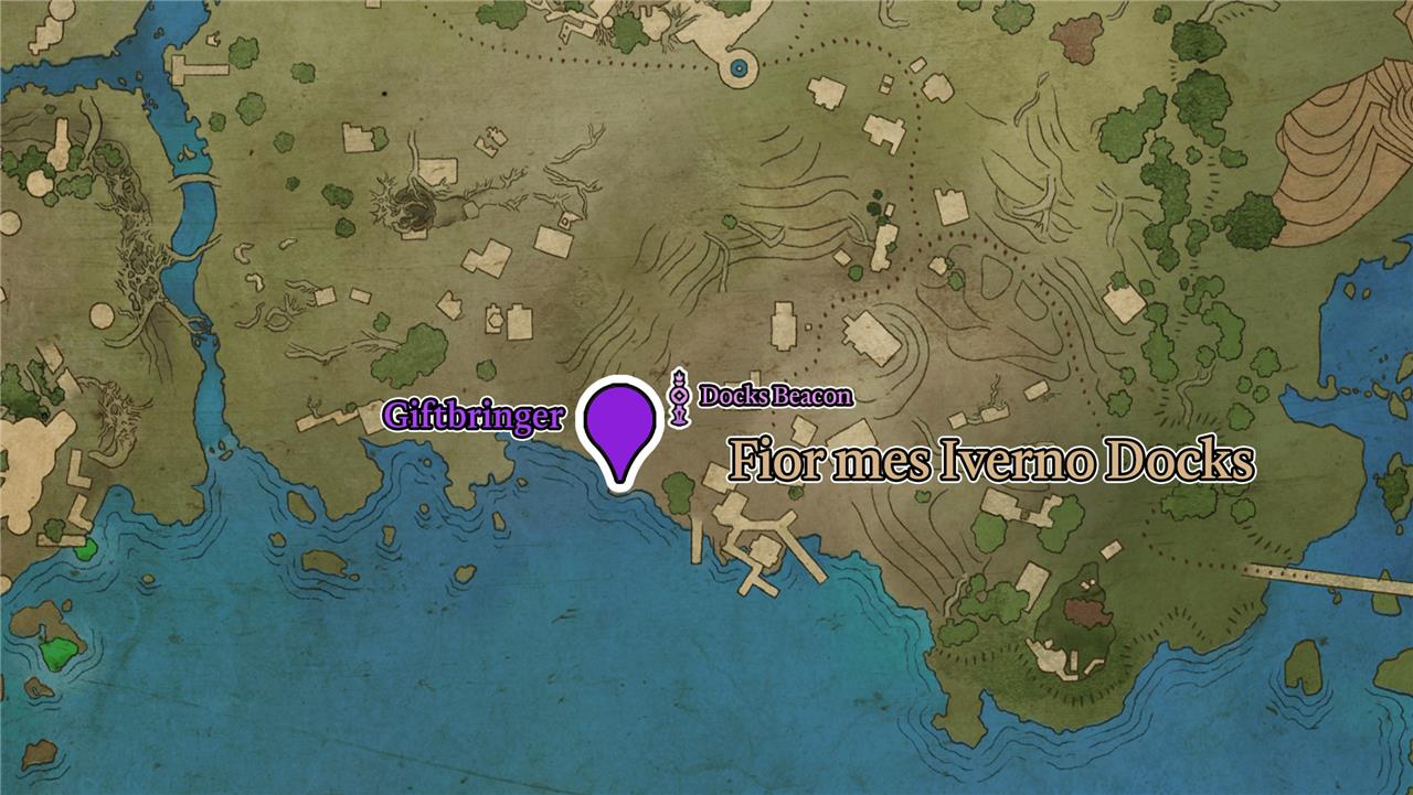 You need to reset the area, so fast travel to the Docks Beacon and then return to the little beach where the Giftbearer was – head south from the beacon and take the first right along the road.