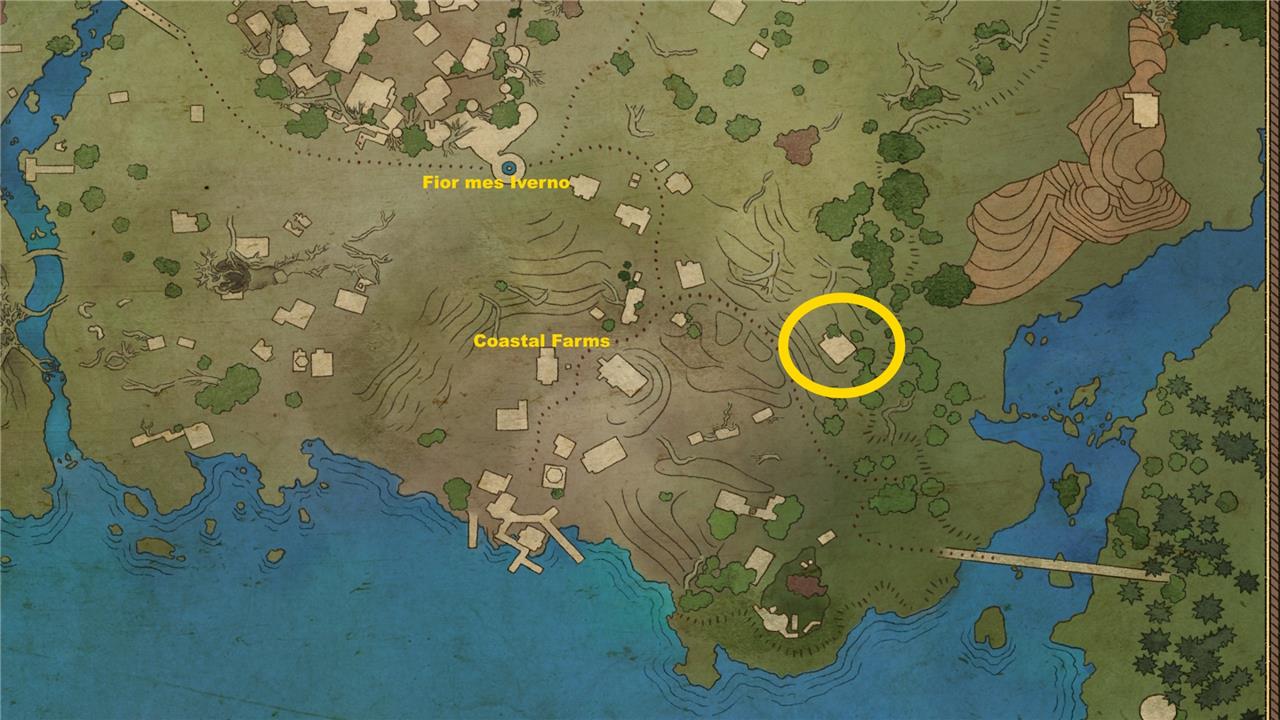The Painter’s Regret map is on an easel in a large farmhouse north of Elia’s Revenant Farm, the region you first travel through when you enter Emerald Stair.