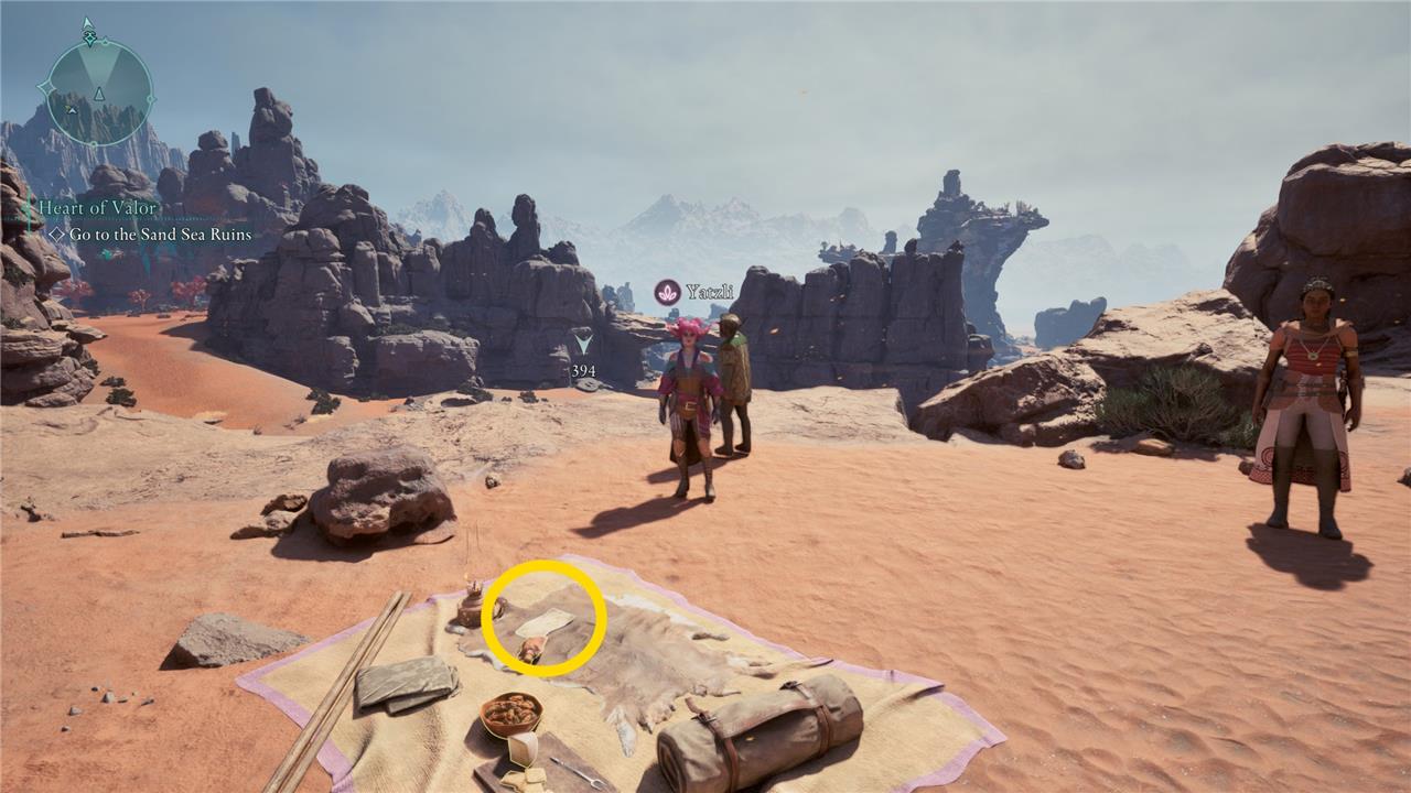 You’ll hear the man musing to himself, and while he sounds like some of the other characters who turned into Dreamthralls elsewhere in Avowed, he’s entirely safe. On the picnic blanket behind him is the Seafarer’s Boots map, along with a bunch of food you can swipe if your stores are running low.
