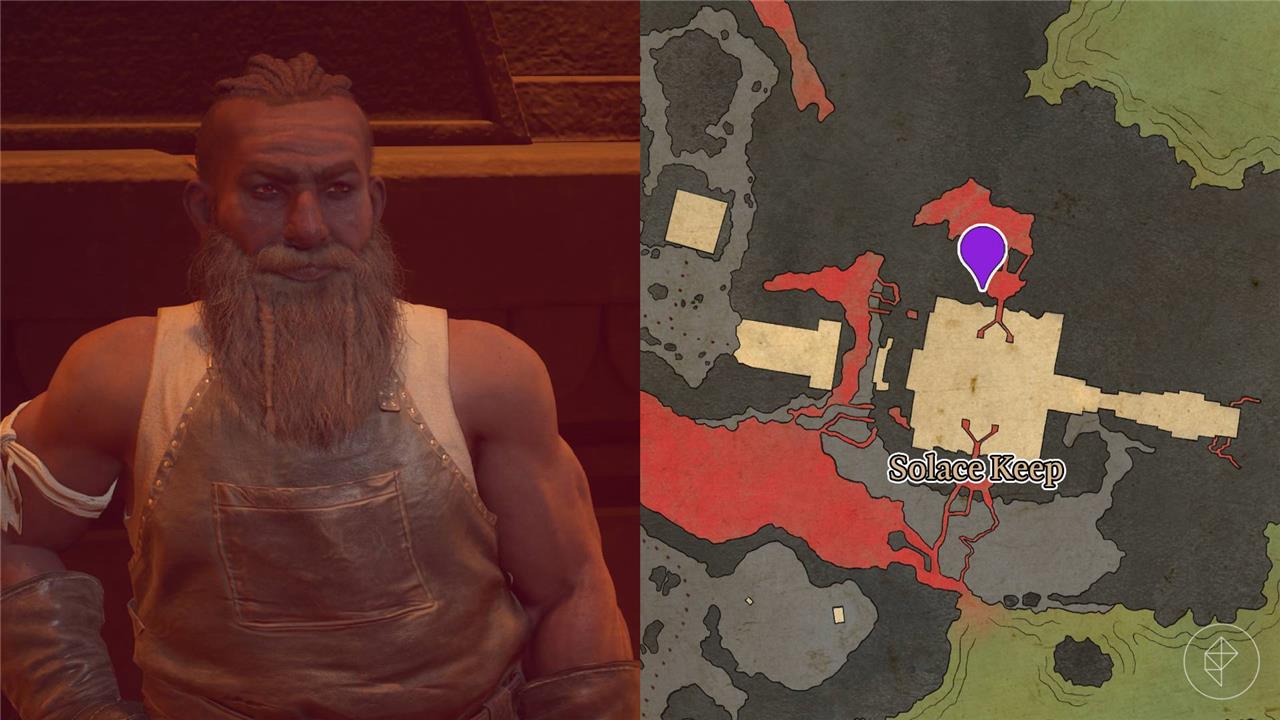 The Starmetal blacksmith in Avowed, Forgemaster Dela, is located in Solace Keep, the main settlement of Galawain’s Tusks, which is the final major area in the game. To find him, enter Solace Keep and descend the stairs behind the statue in the center of the main hall. He is the only blacksmith capable of forging weapons from the rare Starmetal fragments you collect throughout the Living Lands, and you must reach this late-game location to use the fragments to craft powerful unique weapons like the Starmetal Sword or Arquebus.