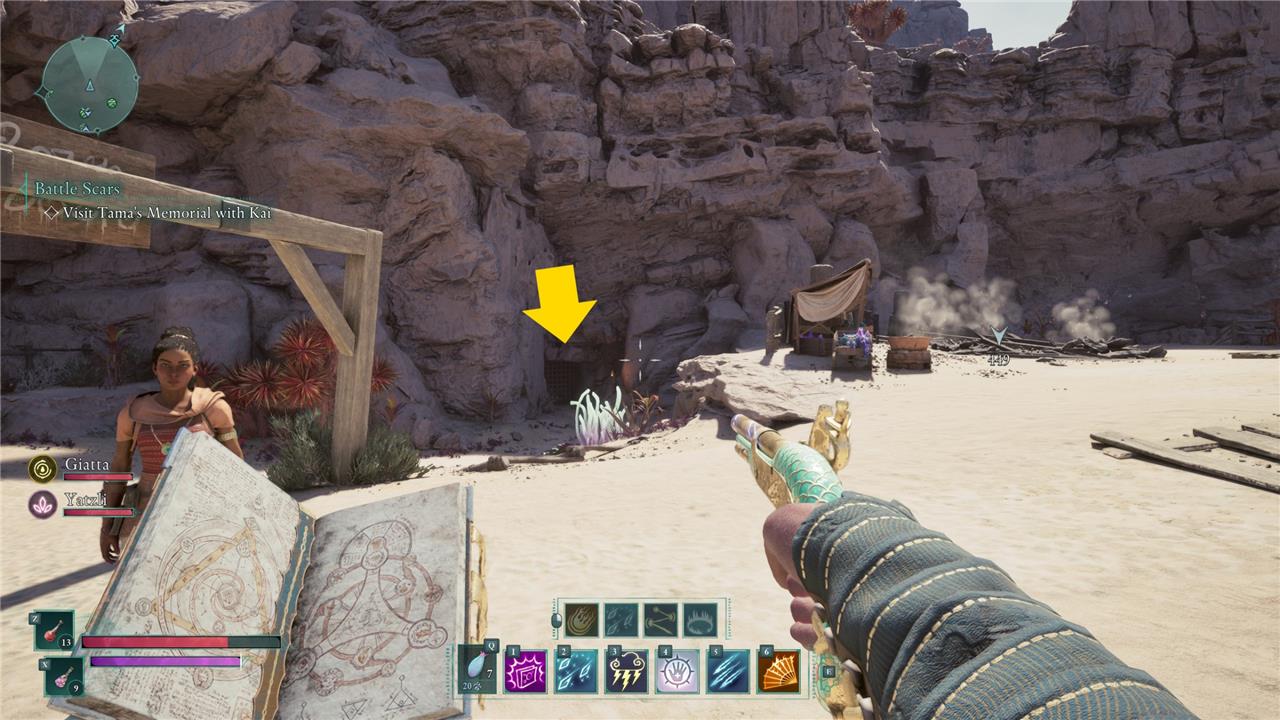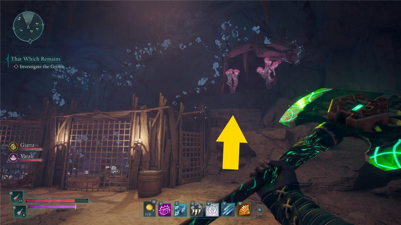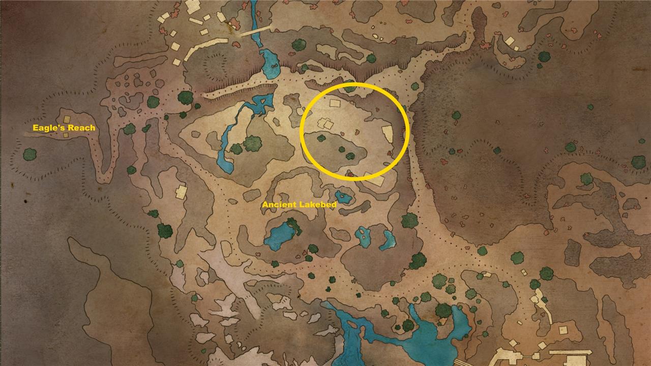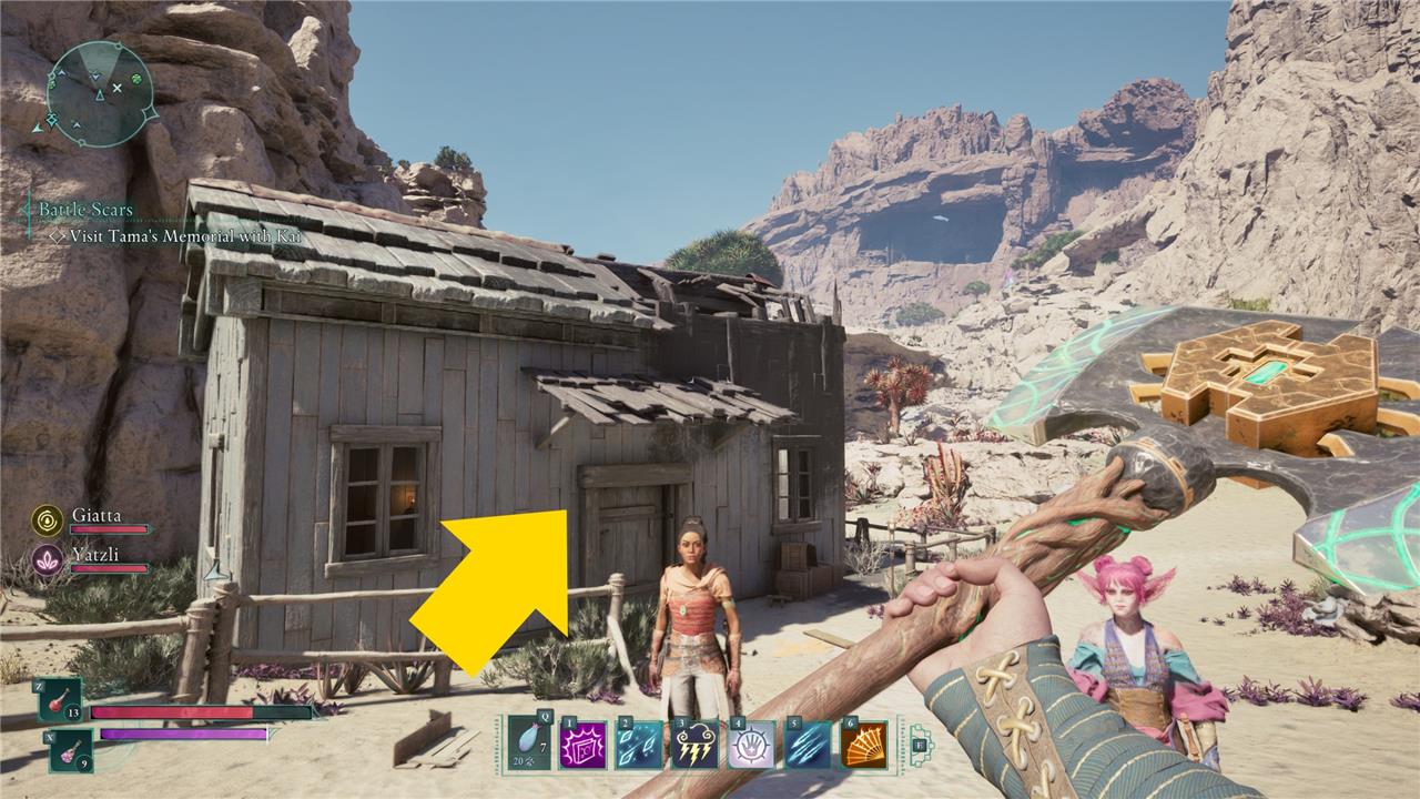 Starting “That Which Remains” takes a bit of dedicated exploration. Head to the Scaedclef Homestead north of the Ancient Lakebed and east of Eagle’s Reach. You’ll see a ruined building with a hole in the roof. The eaves over the door are just out of reach, but you can climb on the fence to the door’s left and then jump to the roof that way.