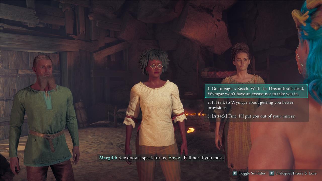 Maegild, the group’s leader, asks you to kill the Dreamthralls for them, but Tobin wants to secure additional provisions so they have more time to wait for the Steel Garrote to stop hunting them.