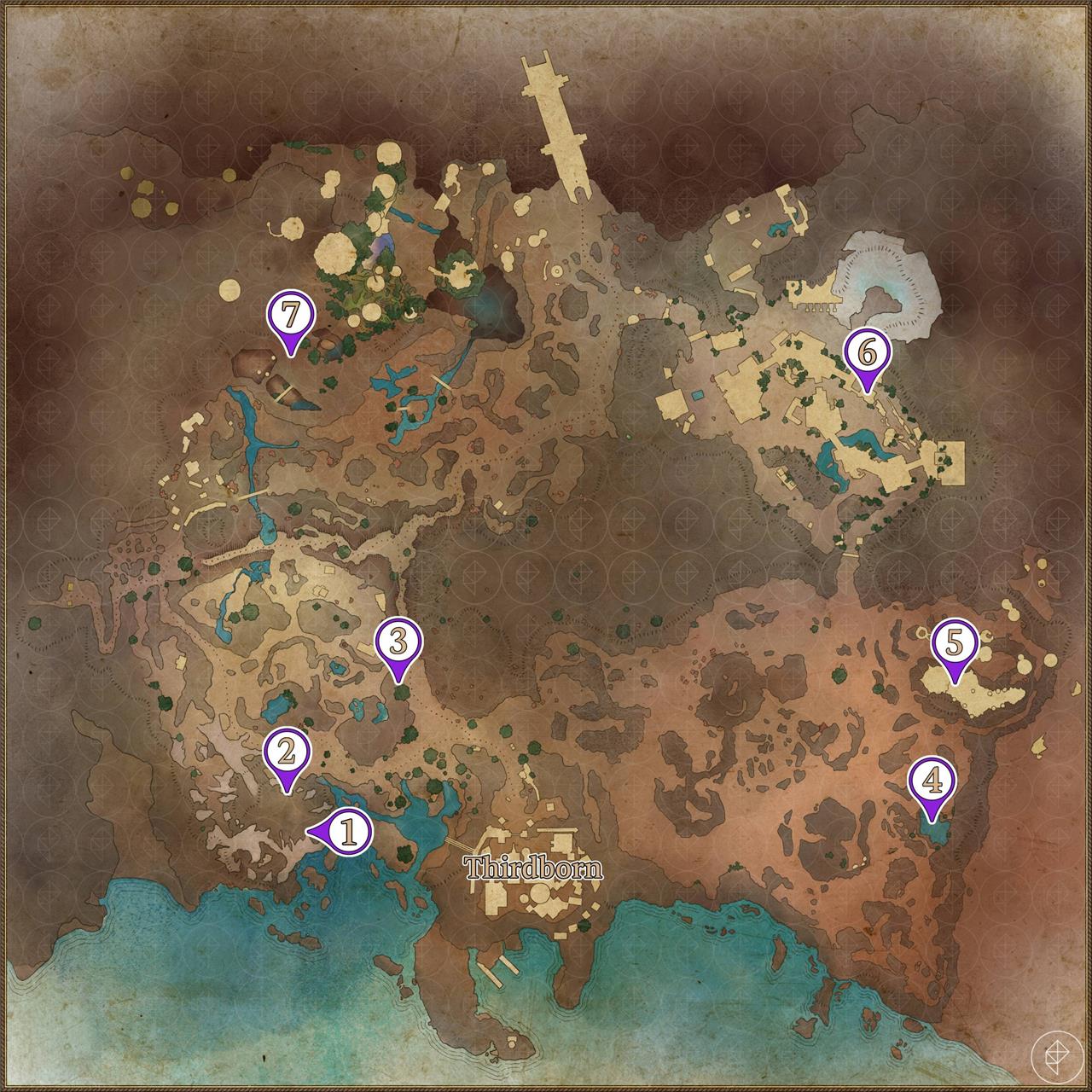 All seven fragments of the Totem of Revelations are hidden around Shatterscarp and its capital, Thirdborn. As soon as you find one piece of the totem (or purchase the “Fragments of the Eyes” key item from Cinzia at the Dead Swordfish in Thirdborn), you’ll receive a quest to find and complete the Eyes of the Obscured. The quest, however, is full of cryptic riddles.