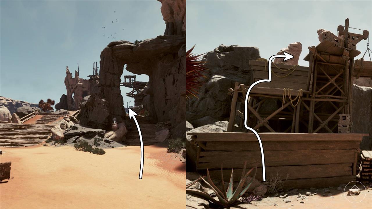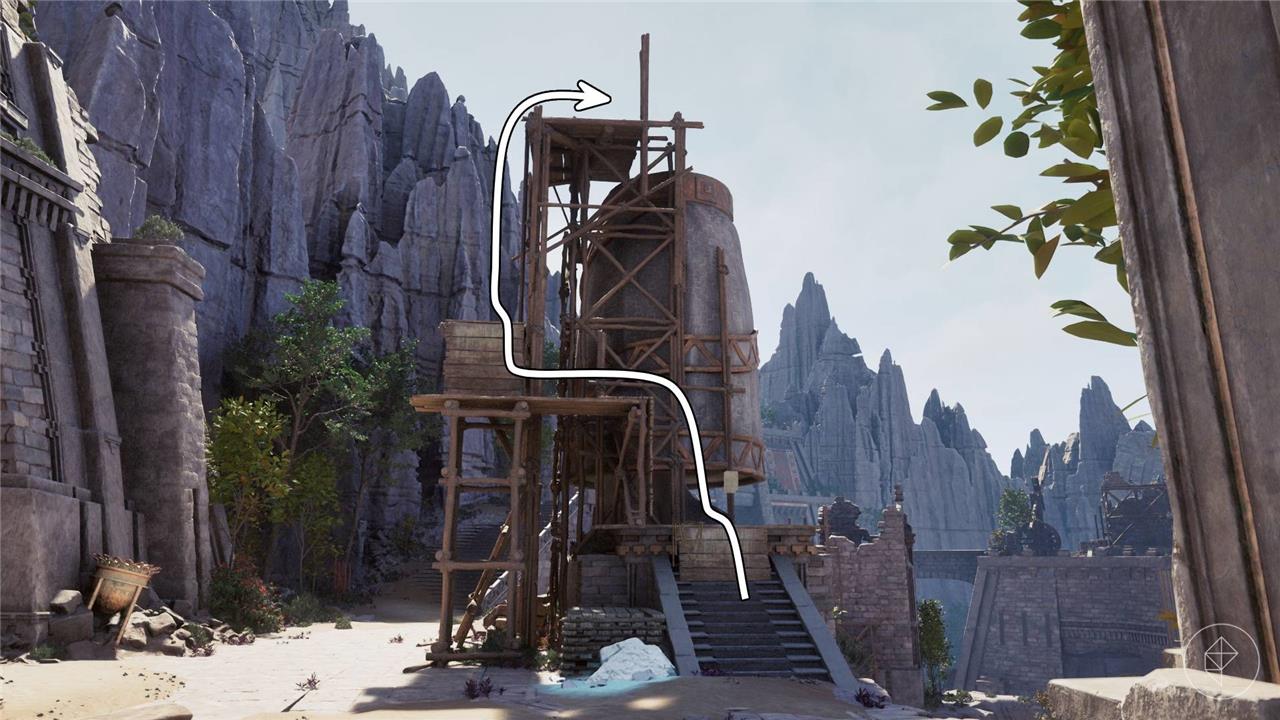 - Climb the ladder and turn to the right to find wooden platforms leading to a higher level.
