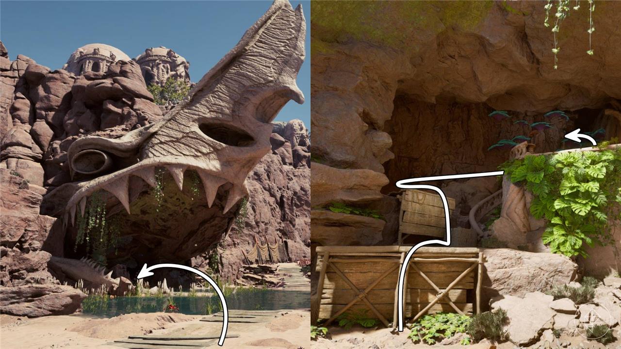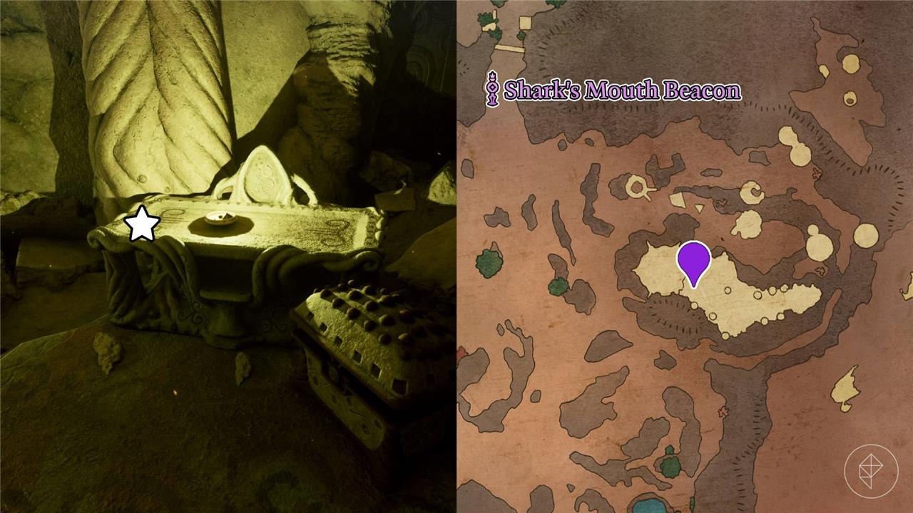 The Topaz Eye, the seventh piece of the Totem of Revelations, is located inside Leviathan’s Hollow in the northwestern part of Shatterscarp. To reach it, start from the Sulfur Mines Base Camp and head northeast toward the massive Leviathan skull marking the camp’s entrance. Enter the Xaurip camp and dive into the pool beneath the skull to access the hollow via an underwater passage. Once inside, prepare to face numerous Xaurip enemies. Climb to the upper section of the camp, where you’ll find the Topaz Eye resting on a stone table next to a corpse at a high vantage point. Collecting this fragment is essential for completing the Totem of Revelations and unlocking powerful passive buffs for your party.