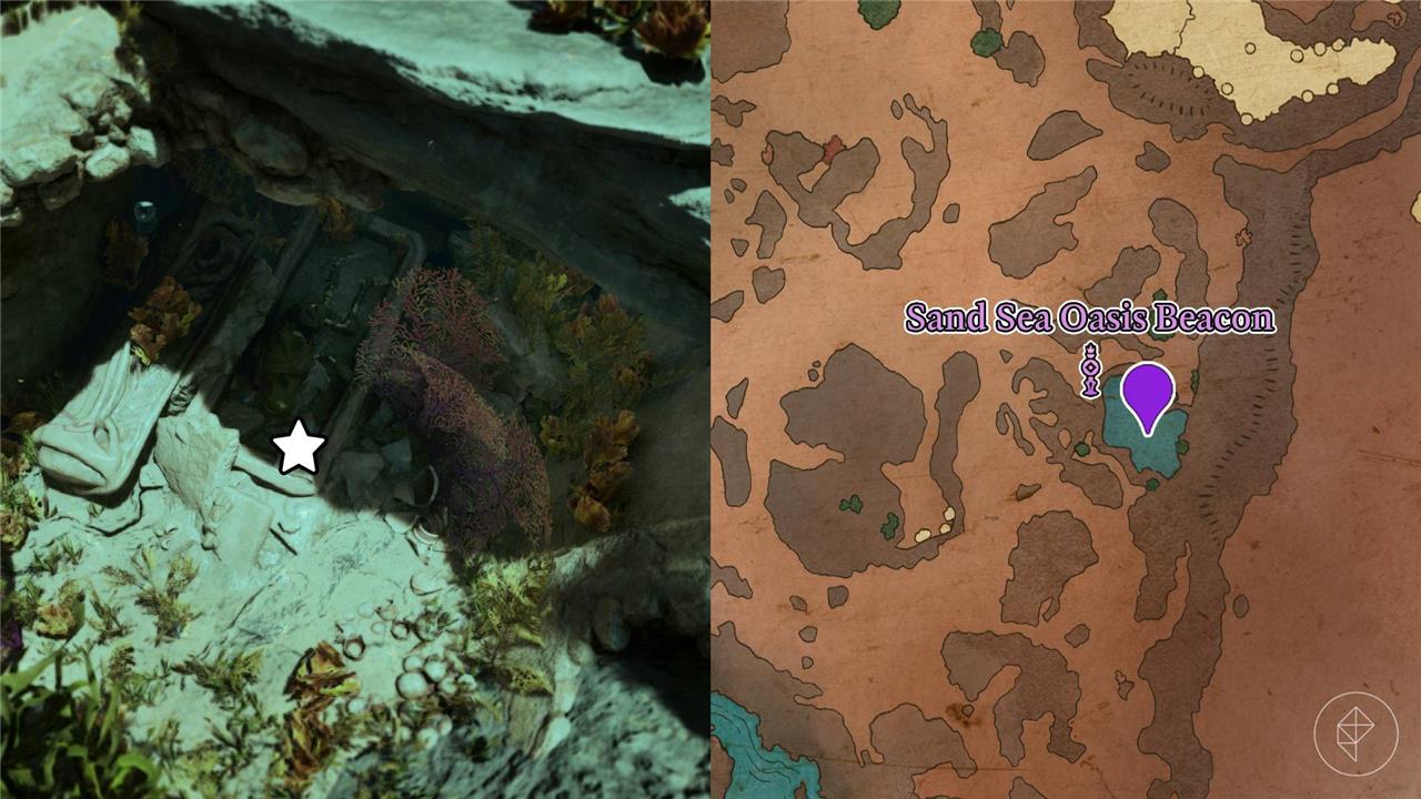 - Travel to the Sand Sea Oasis Beacon on the eastern side of Shatterscarp.
