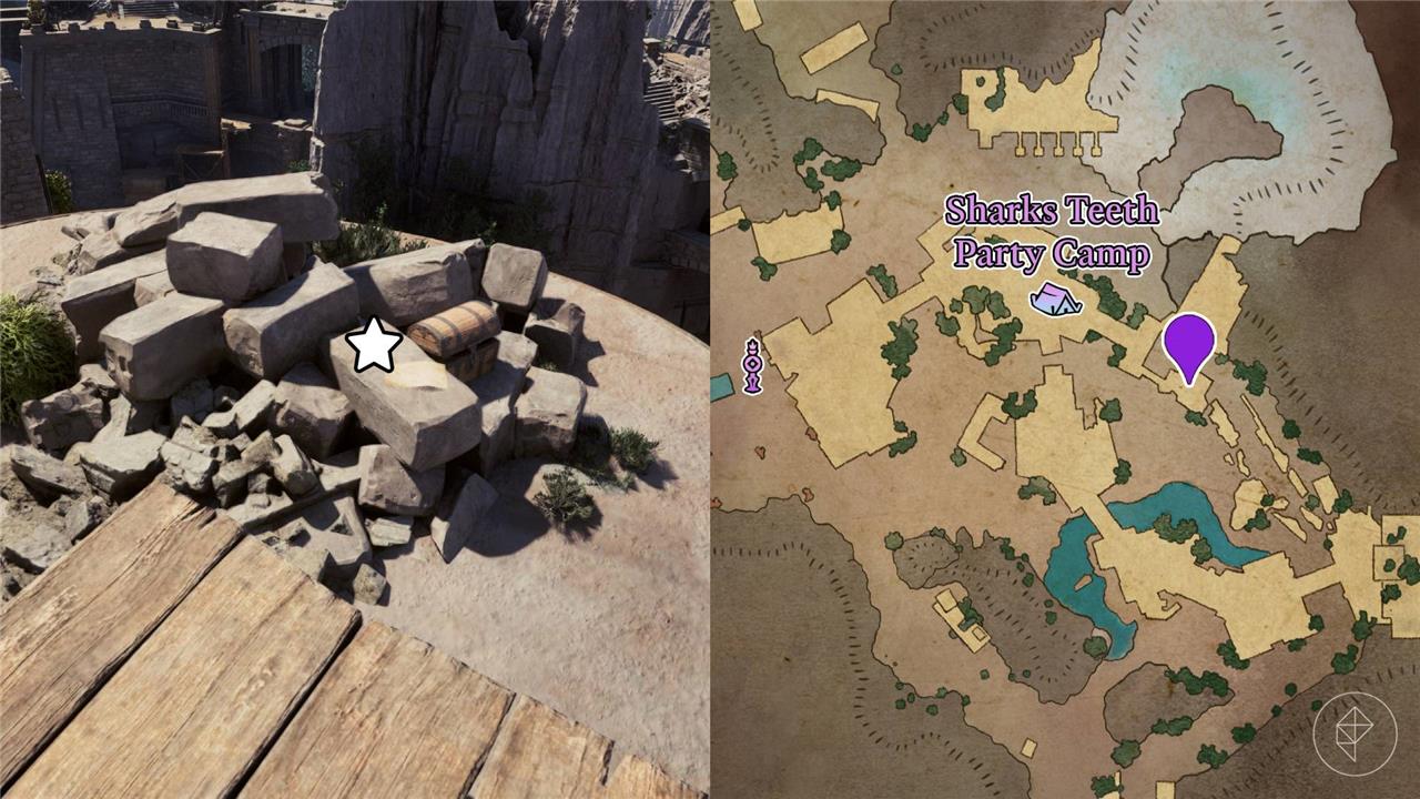 The Sapphire Eye totem fragment is located at the Sand Sea Oasis, found on the southeastern edge of the Great Sand Sea in Shatterscarp. To obtain it, head to the oasis and dive to the very bottom of the water, where you’ll spot the Sapphire Eye resting on a sarcophagus. This area is also relevant for the “One Last Drink” side quest, so you can make progress on both objectives at once. Be sure to search thoroughly underwater, as the fragment is not visible from the surface and requires a swim to reach.