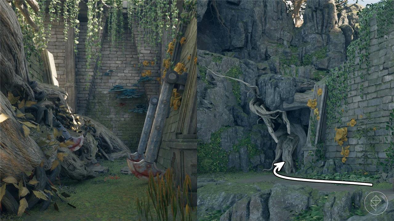 - Head inside of Castol’s Folly and go into the cave with vines growing along the walls above it.