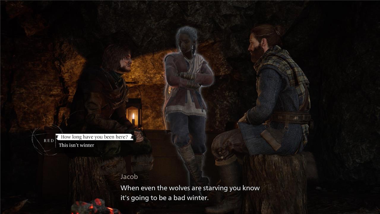 After Red is rescued and the banishers set off to return to New Eden, you’ll come to a broken bridge and will need to find a way around. You’ll soon come across Jacob Lynde in a cave as he waits out the quickmyst.