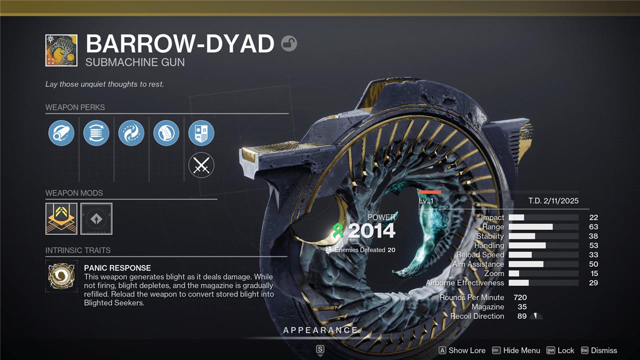 Following acquisition, you can embark on the “Dyadic Ascension” quest to upgrade the weapon’s intrinsic perks, enhancing its power and uniqueness. Additional secret Exotic Catalysts for the Barrow-Dyad, such as High Impact Reserves, require completing specific hidden objectives like finishing an Expert Court of Blades activity while wielding the weapon.